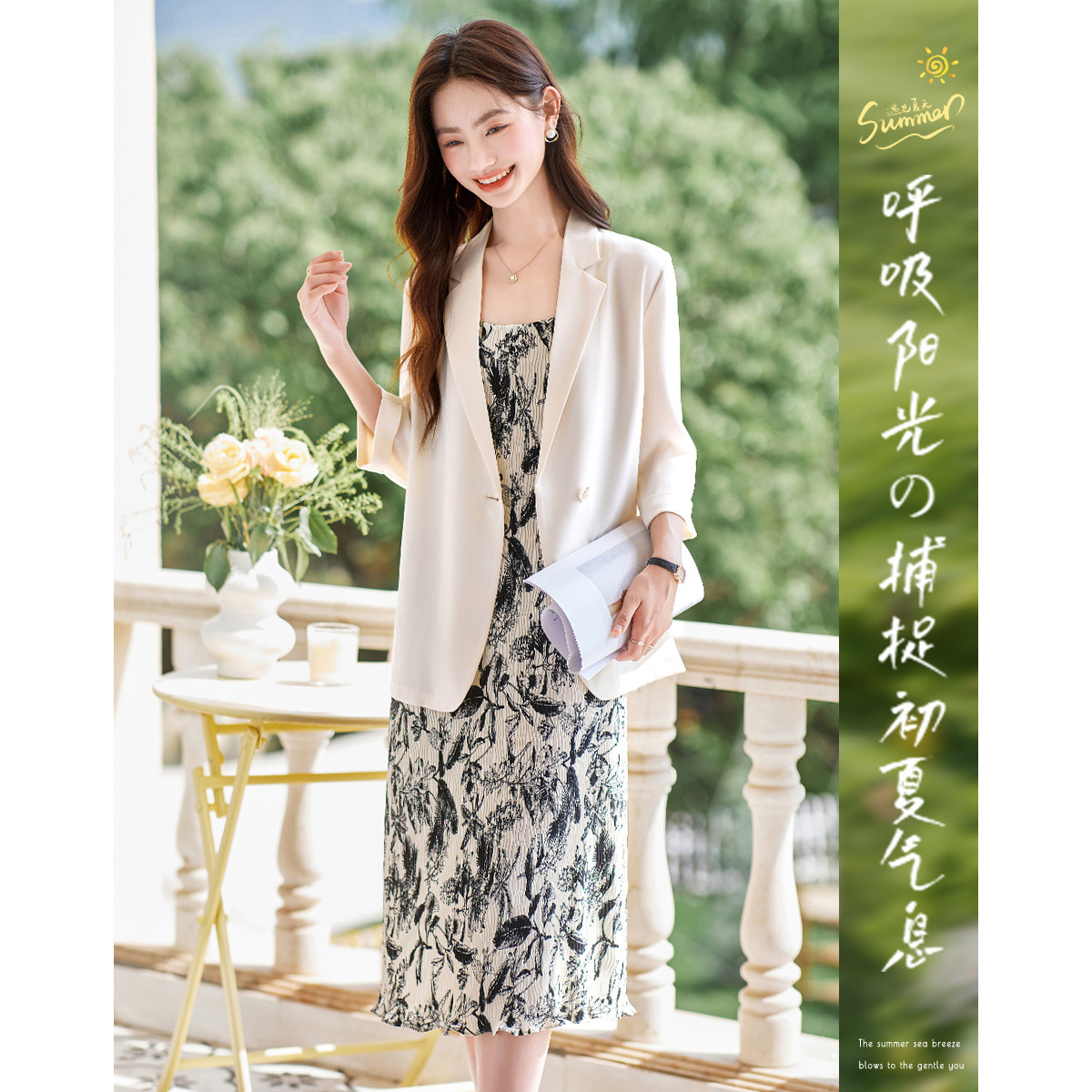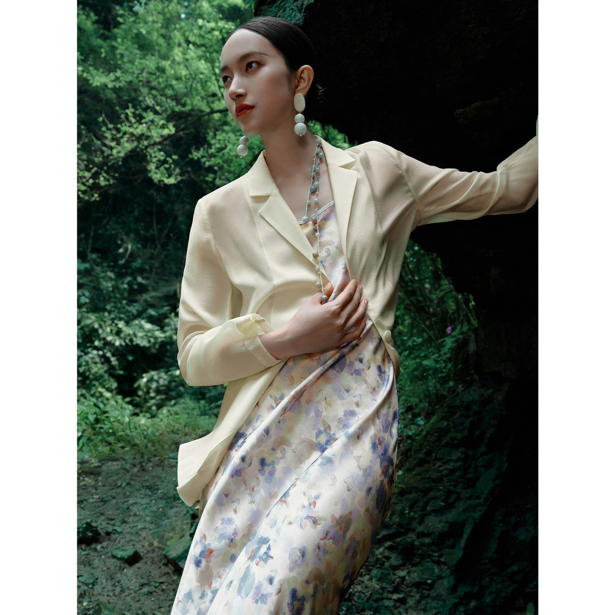 旗下安娜蔻系列通勤简约肌理感微皱柔光轻薄宽松西装女夏季 593356