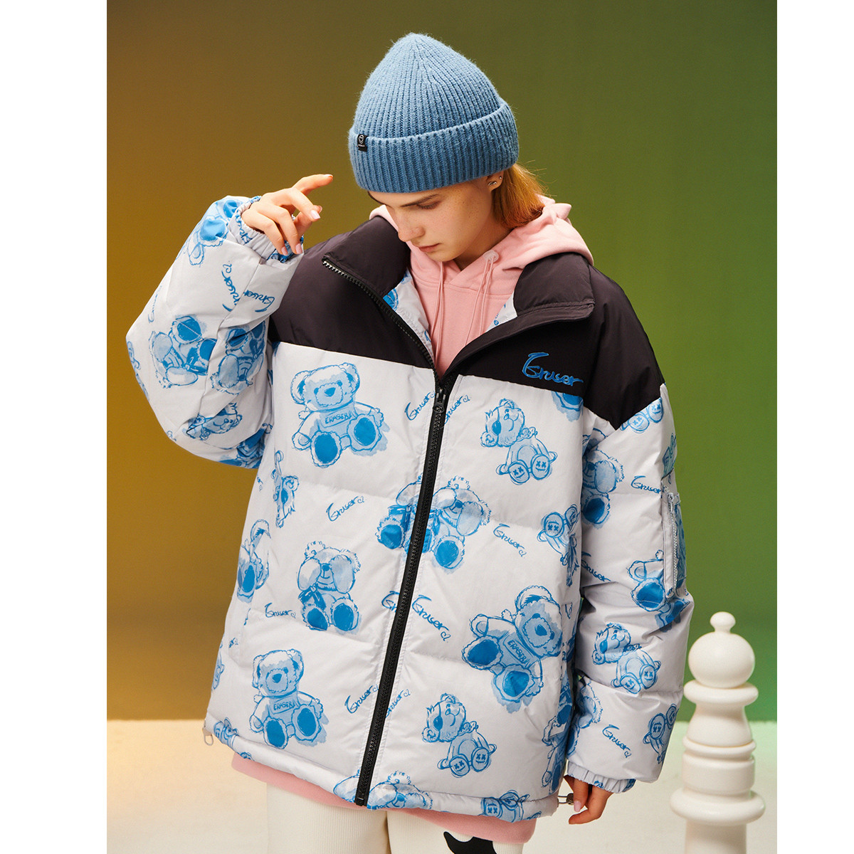冬季立领短款羽绒服拼接外套休闲宽松保暖上衣男女同款 132887