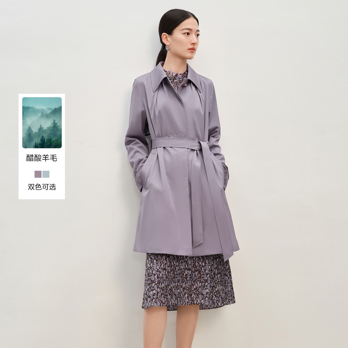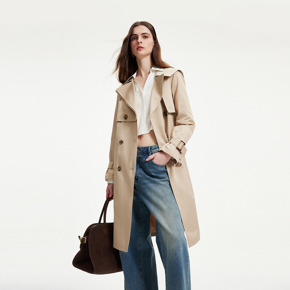 风衣外套女长款翻领收腰双排扣通勤优雅 720145