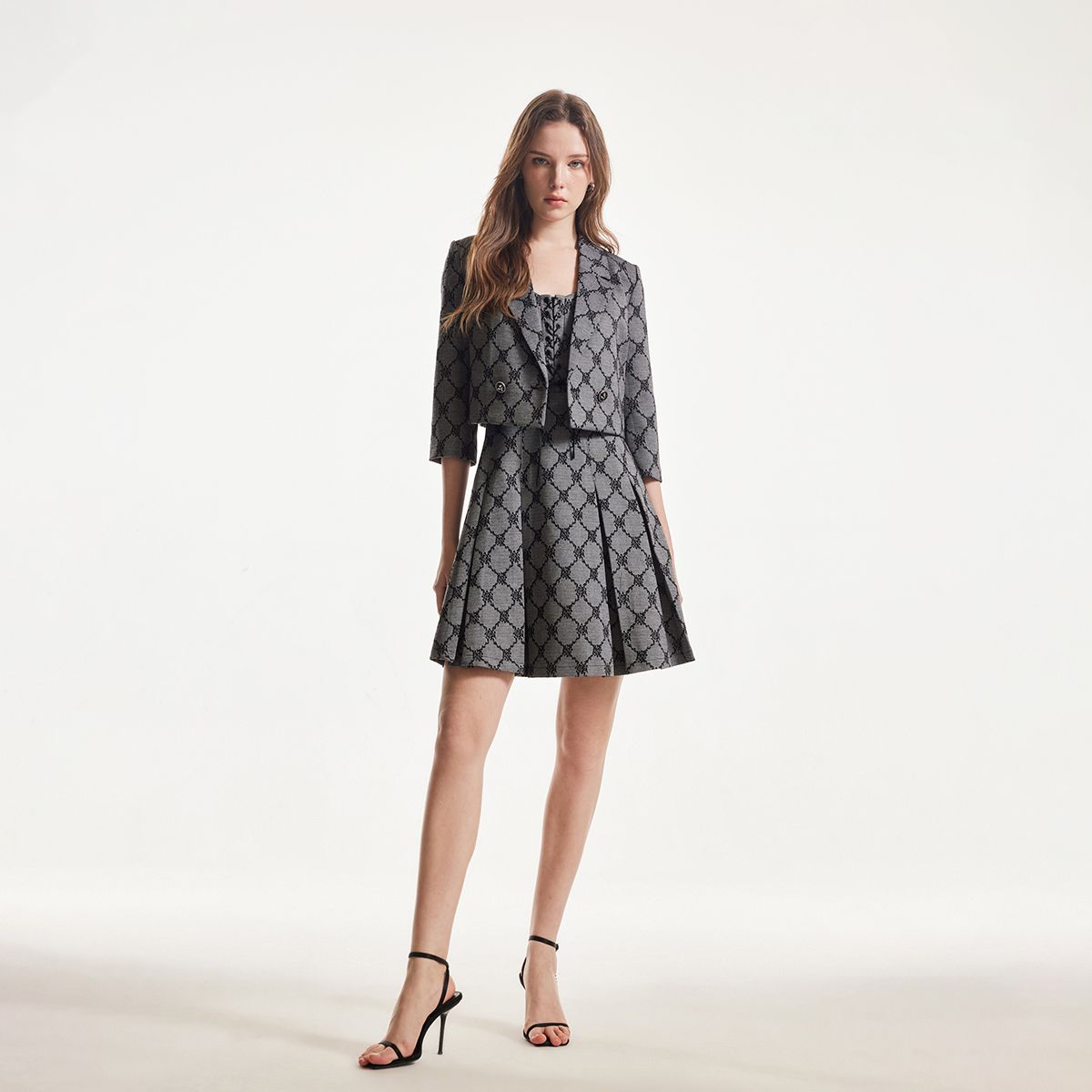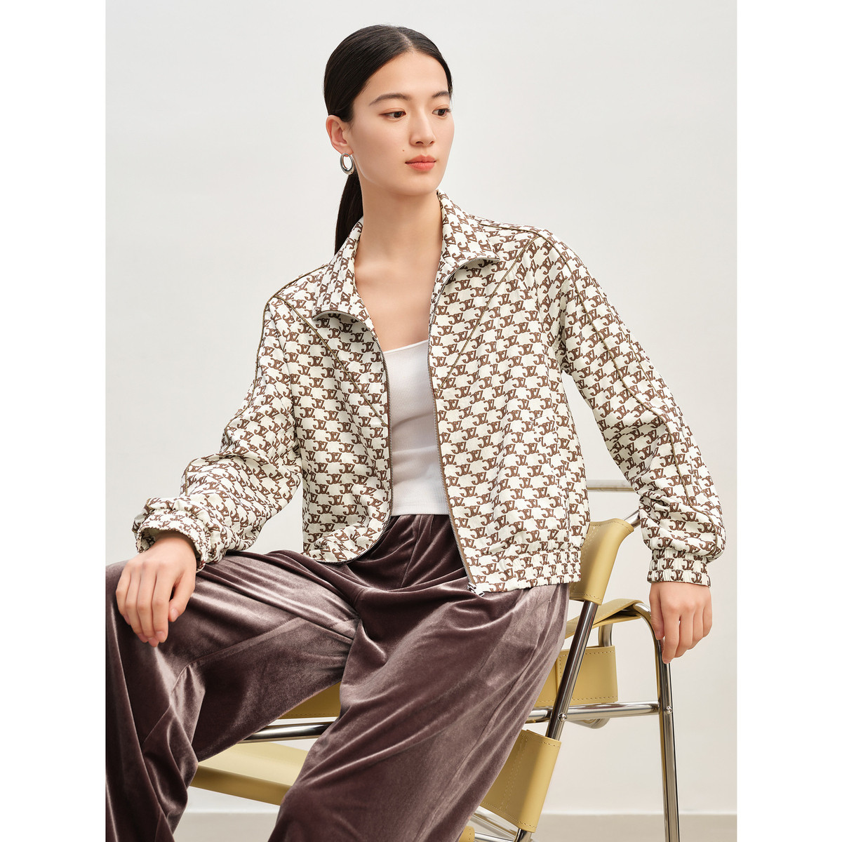 玖姿旗下安娜蔻系列复古休闲老钱风印花外套女春季 738188