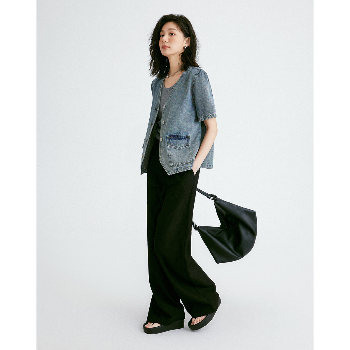 【V领牛仔外套】夏款酷帅街头风气质正肩袖复古外套女 256514