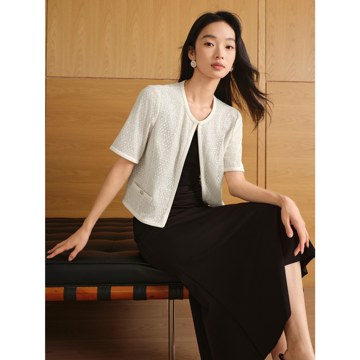 玖姿旗下安娜蔻系列优雅淑女风减龄蕾丝镶边短款薄外套女夏季 855052