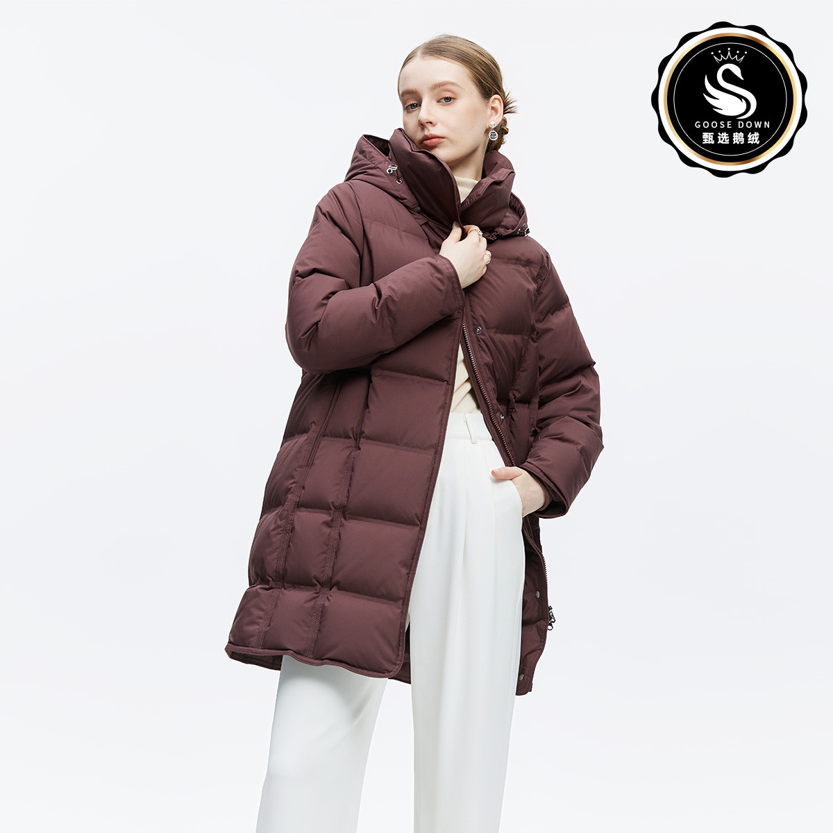 【鹅绒爆款】冬季女士长款羽绒服简约连帽防寒保暖极寒服 593759