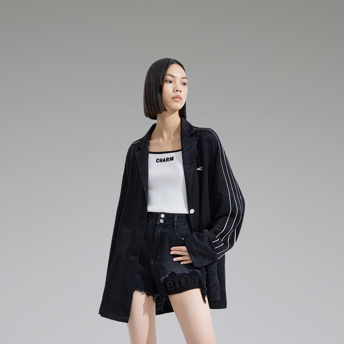 春装 设计感宽松休闲运动风中长西装外套女 257295