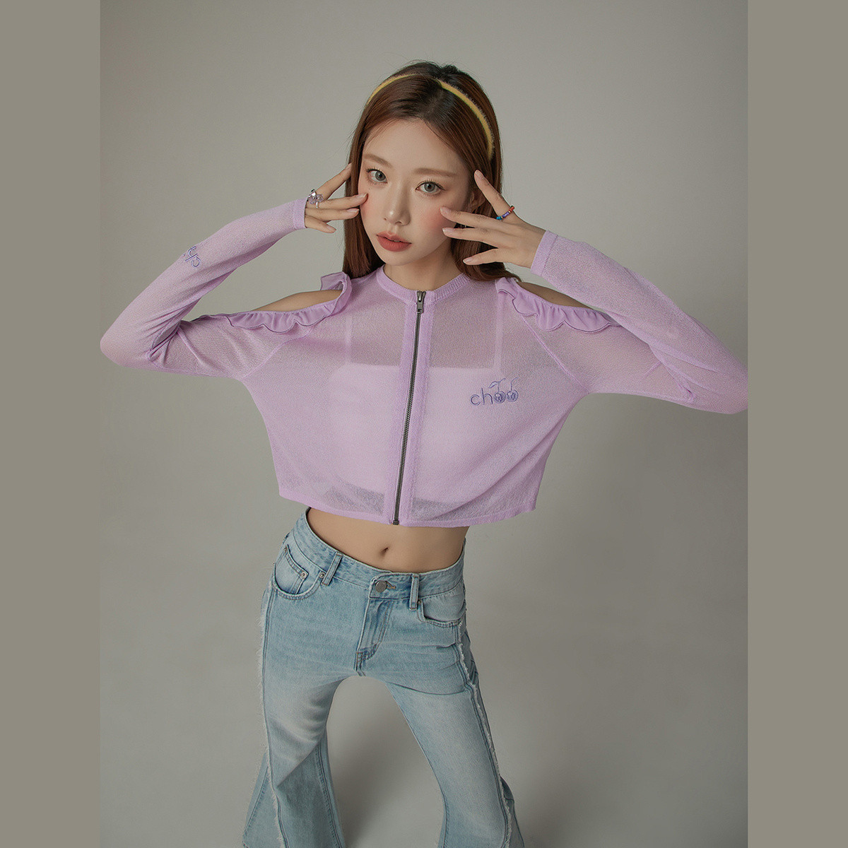 露肩刺绣针织开衫女夏甜美减龄百搭长袖拉链外套 211987