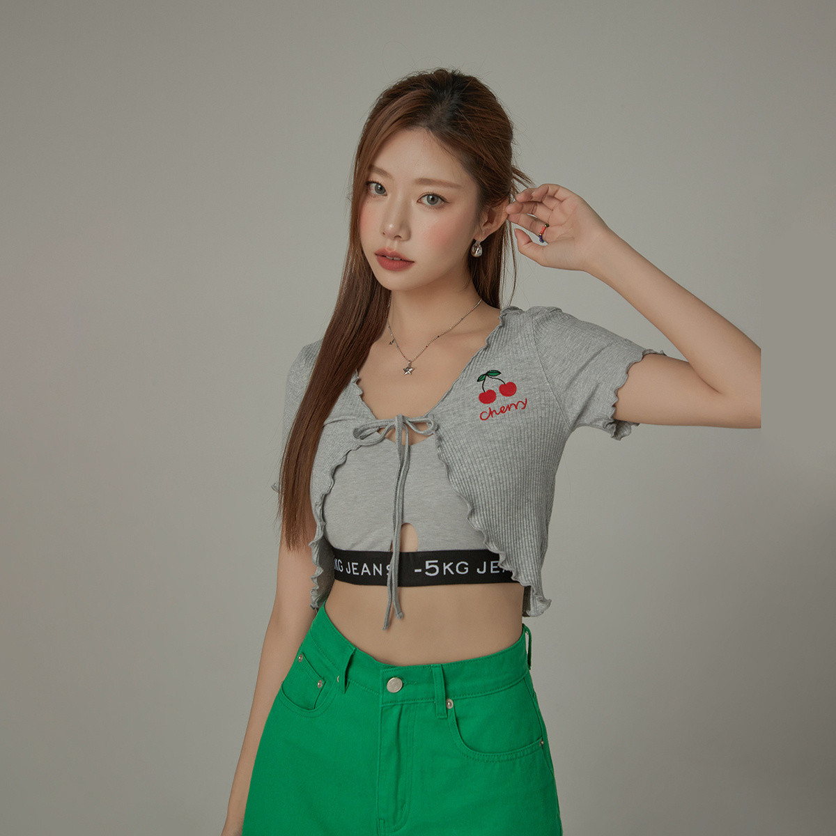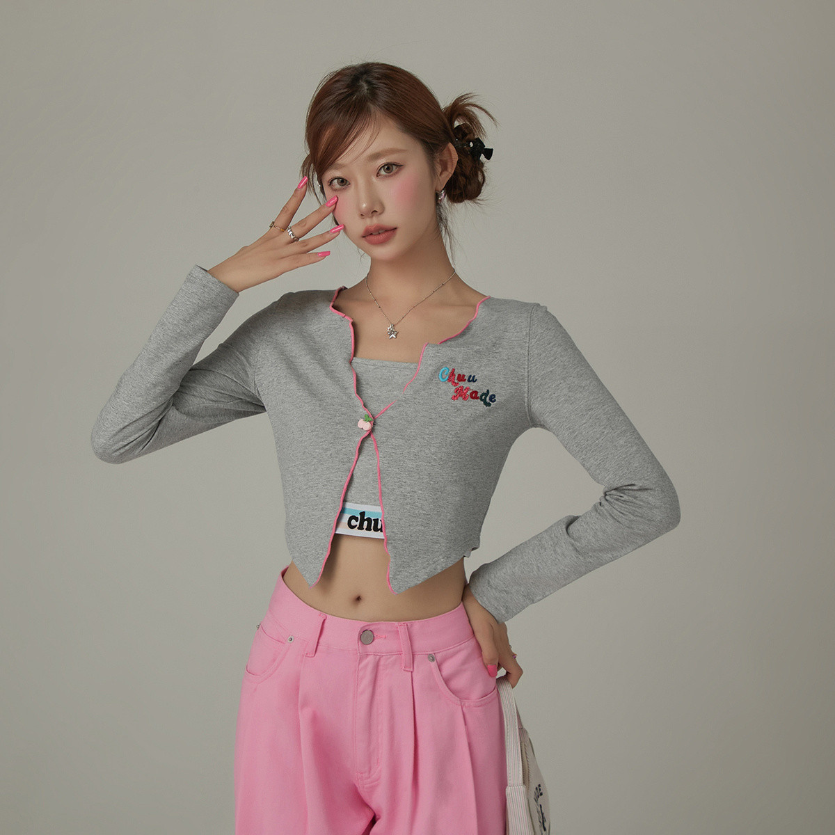 CHUU木耳边系带短外套女春夏小樱桃修身甜辣上衣 722131