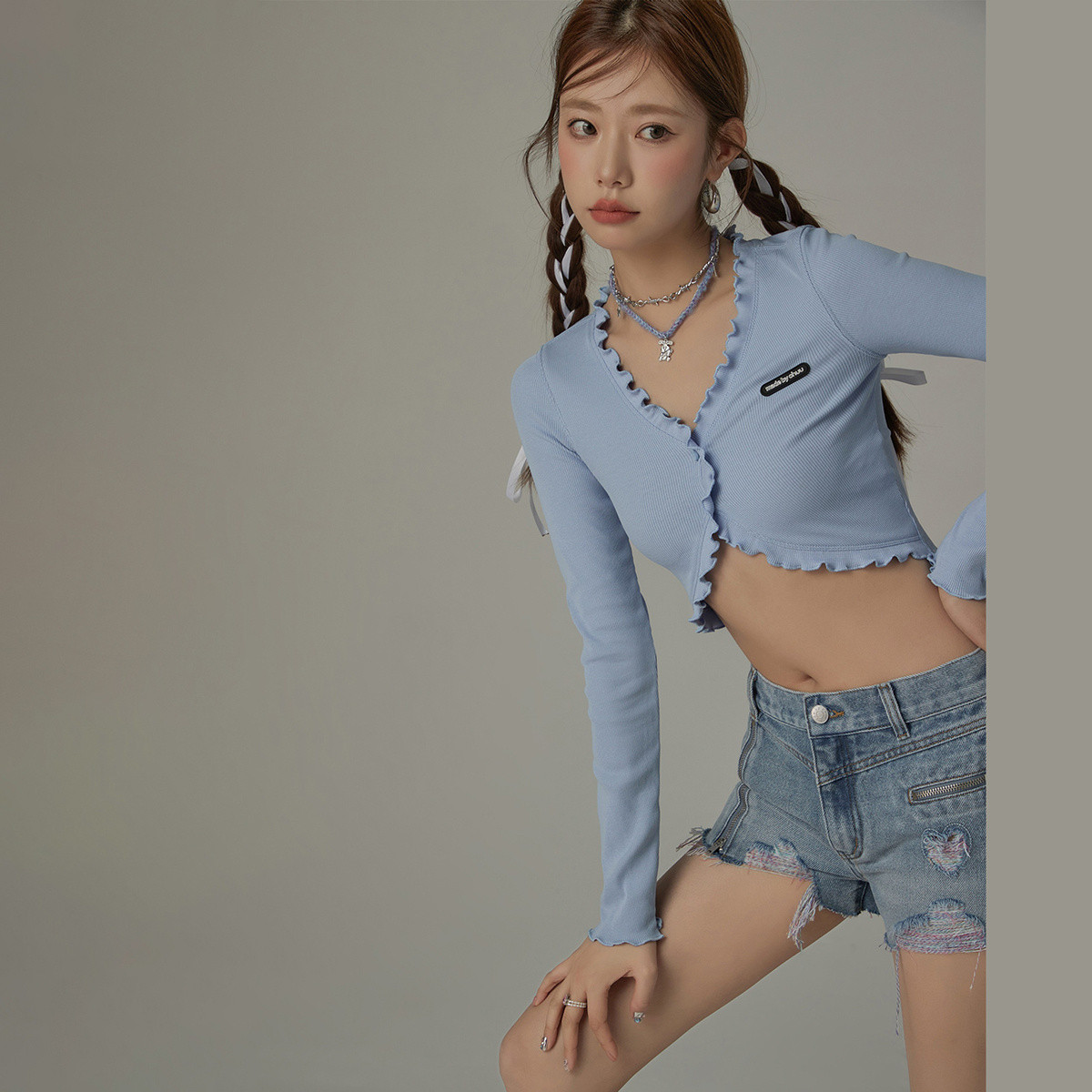 【浅蓝短外套】夏款氧气治愈感浅蓝立体时髦短款外套女 285186