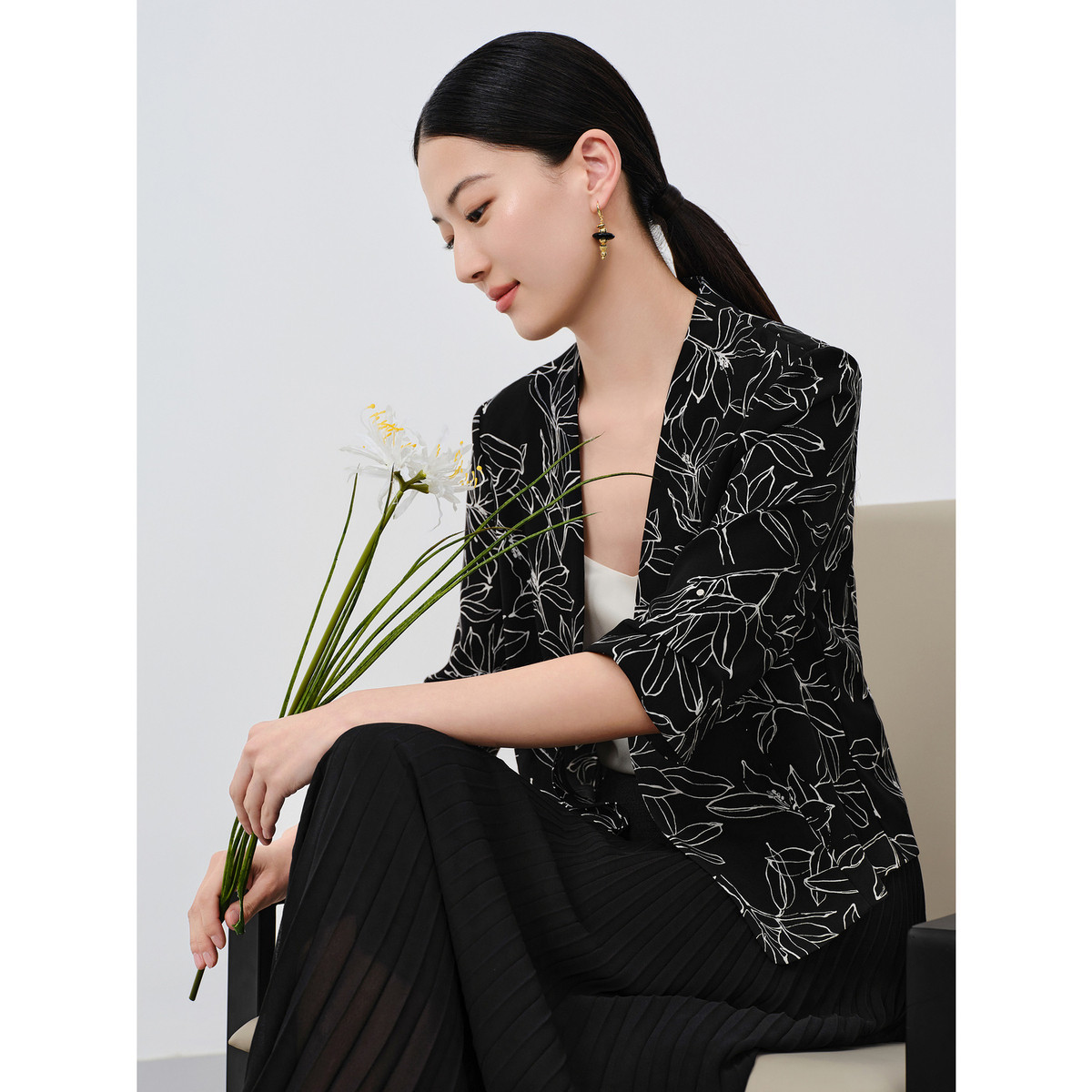 【醋酸系列】玖姿旗下安娜蔻系列印花V领短西装女夏季 080204