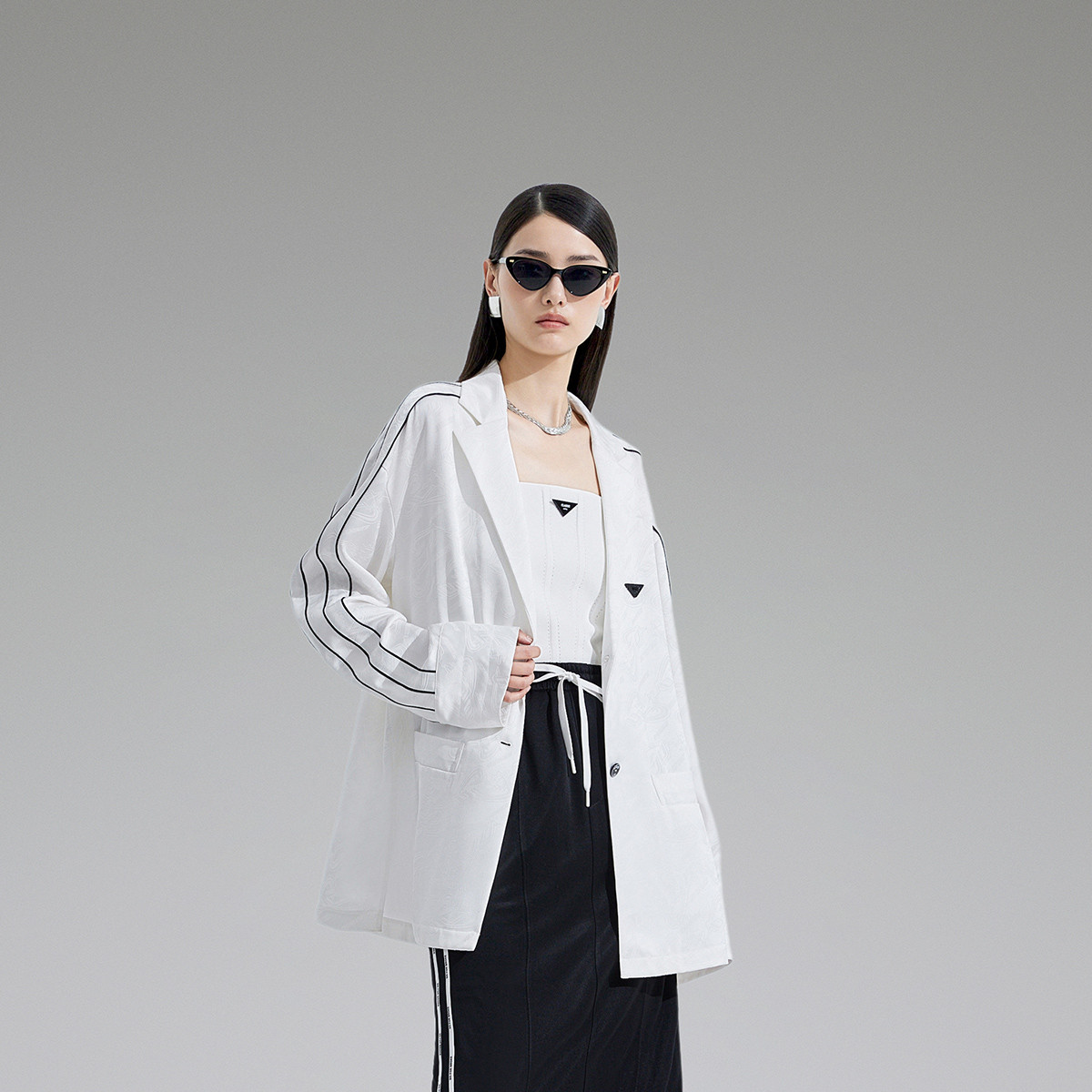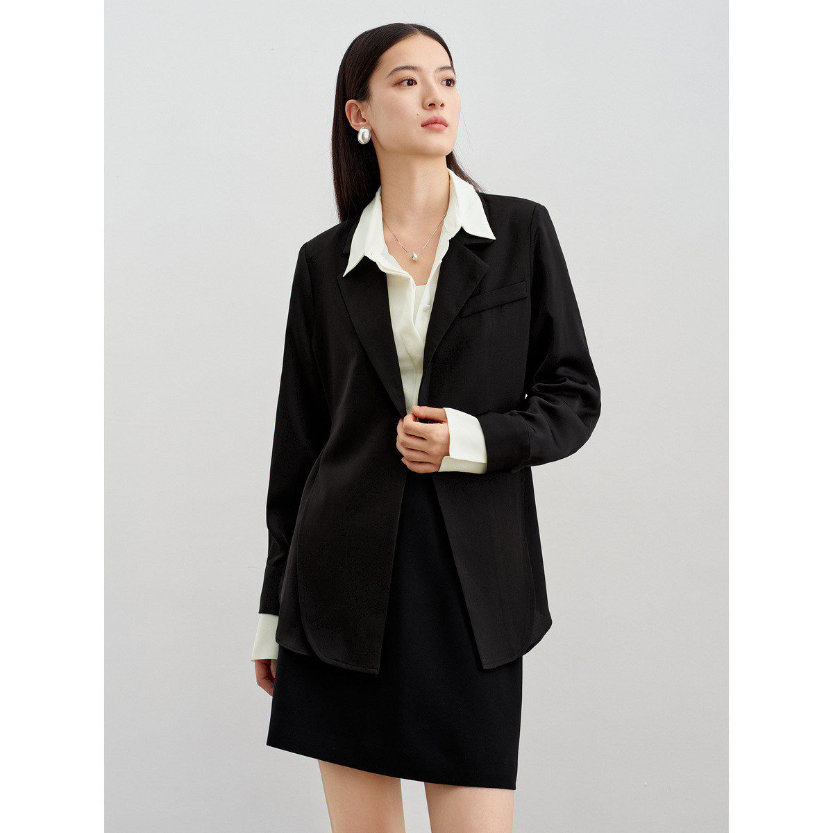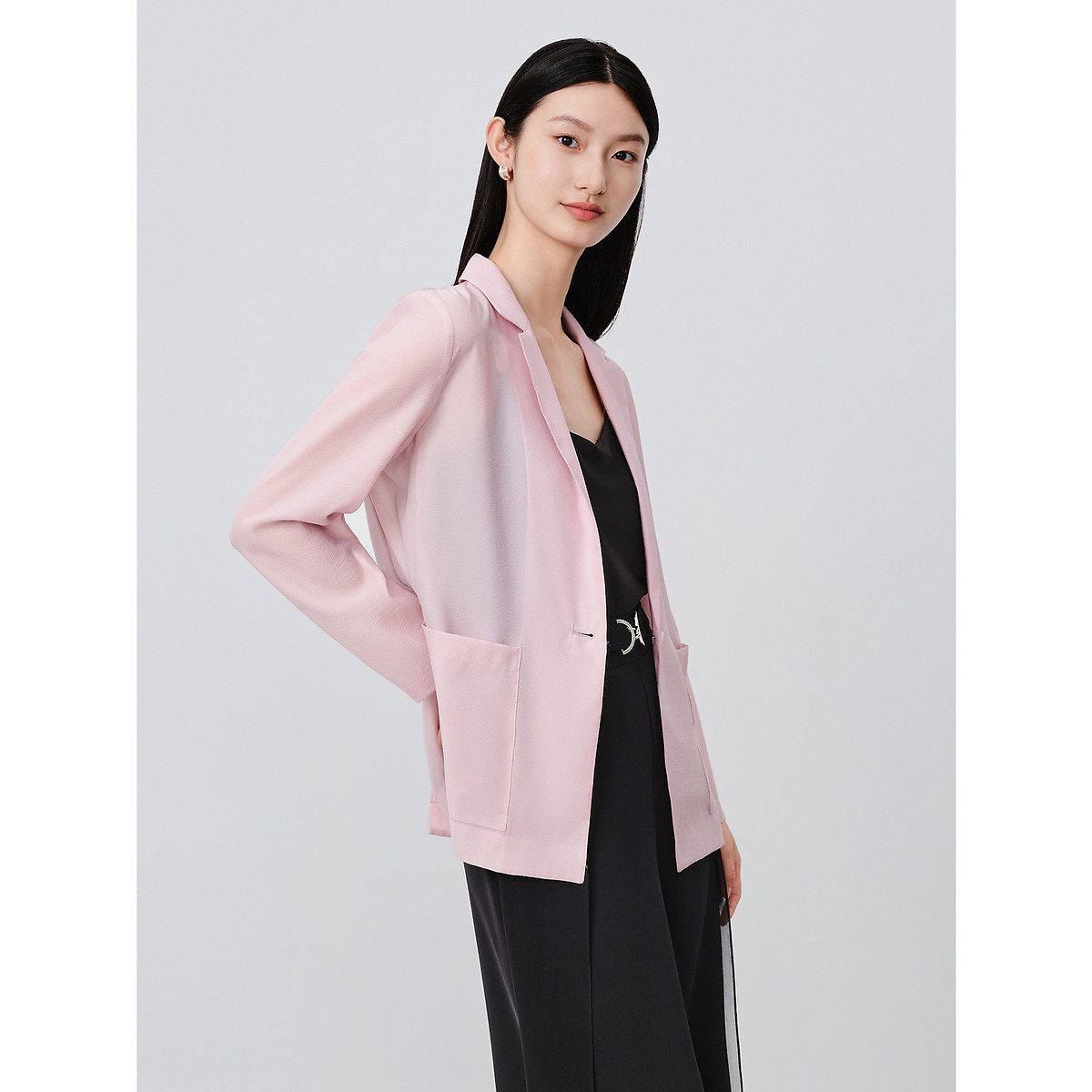 旗下安娜蔻系列通勤简约肌理感微皱柔光轻薄宽松西装女夏季 589260