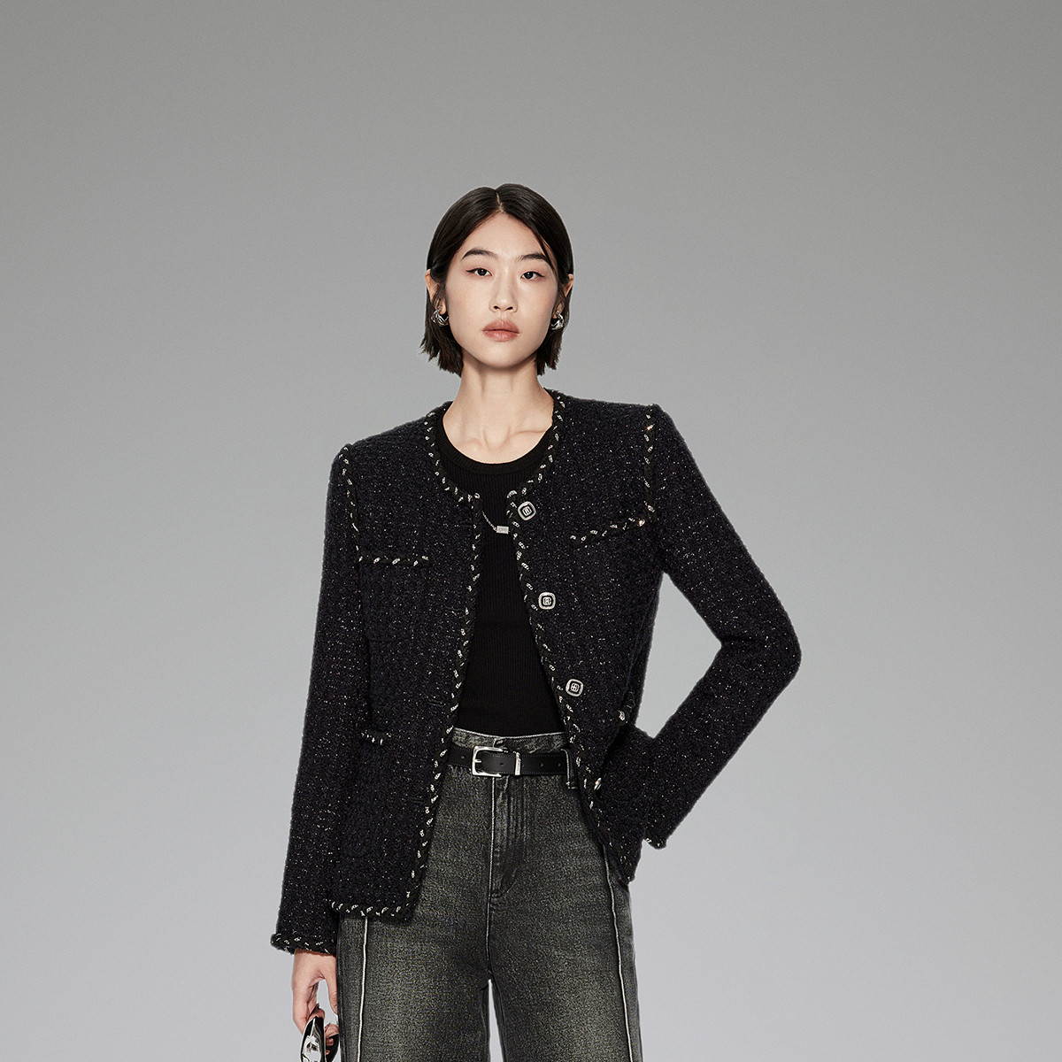 春装 通勤手工镶边羊毛花式纱小香风外套女 789775