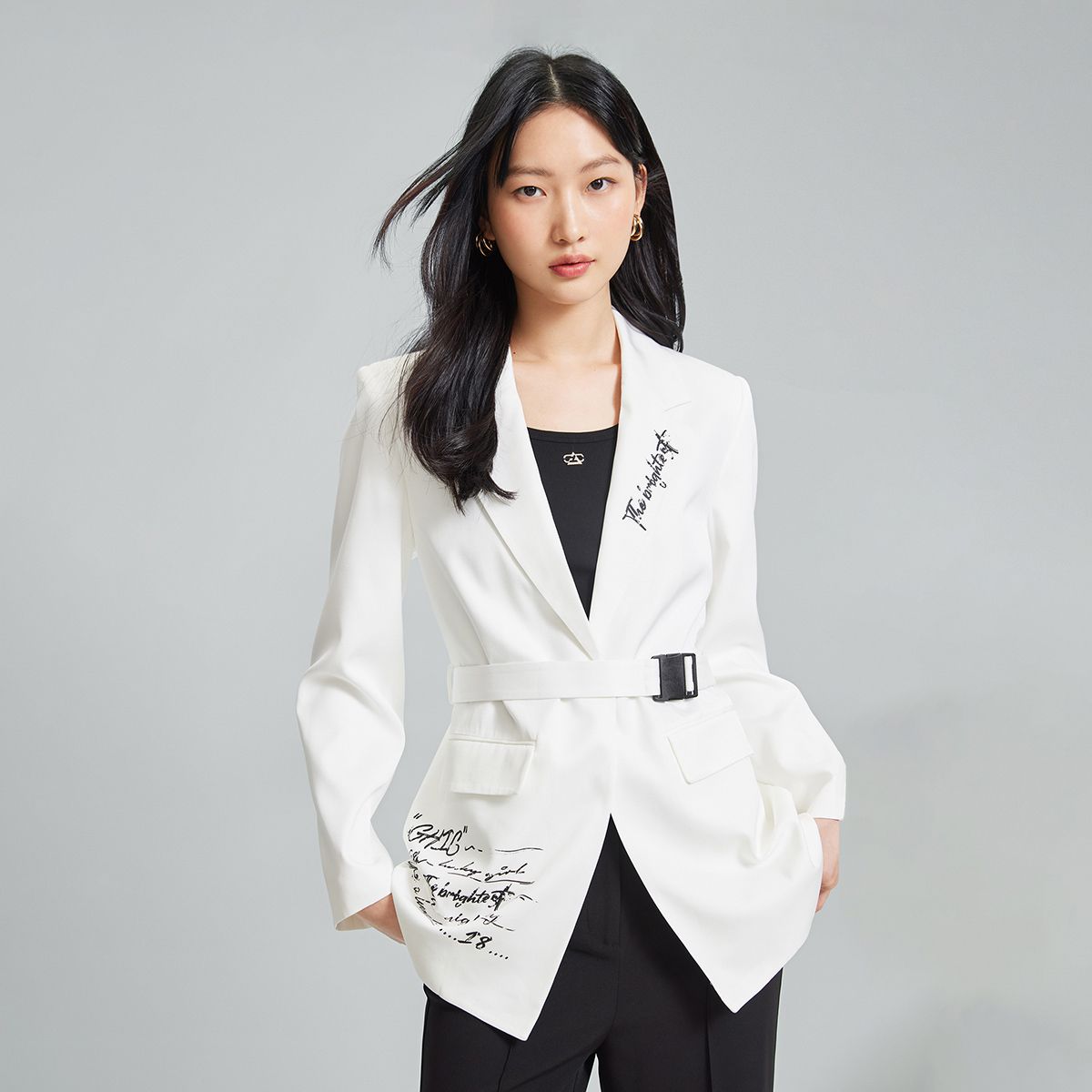 西装女翻领直筒垫肩纯色字母通勤优雅 967633