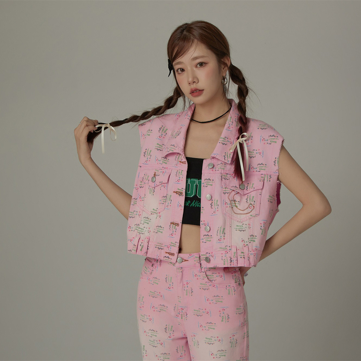 潮酷牛仔马夹女夏洋气减龄百搭别致无袖毛边上衣 744467