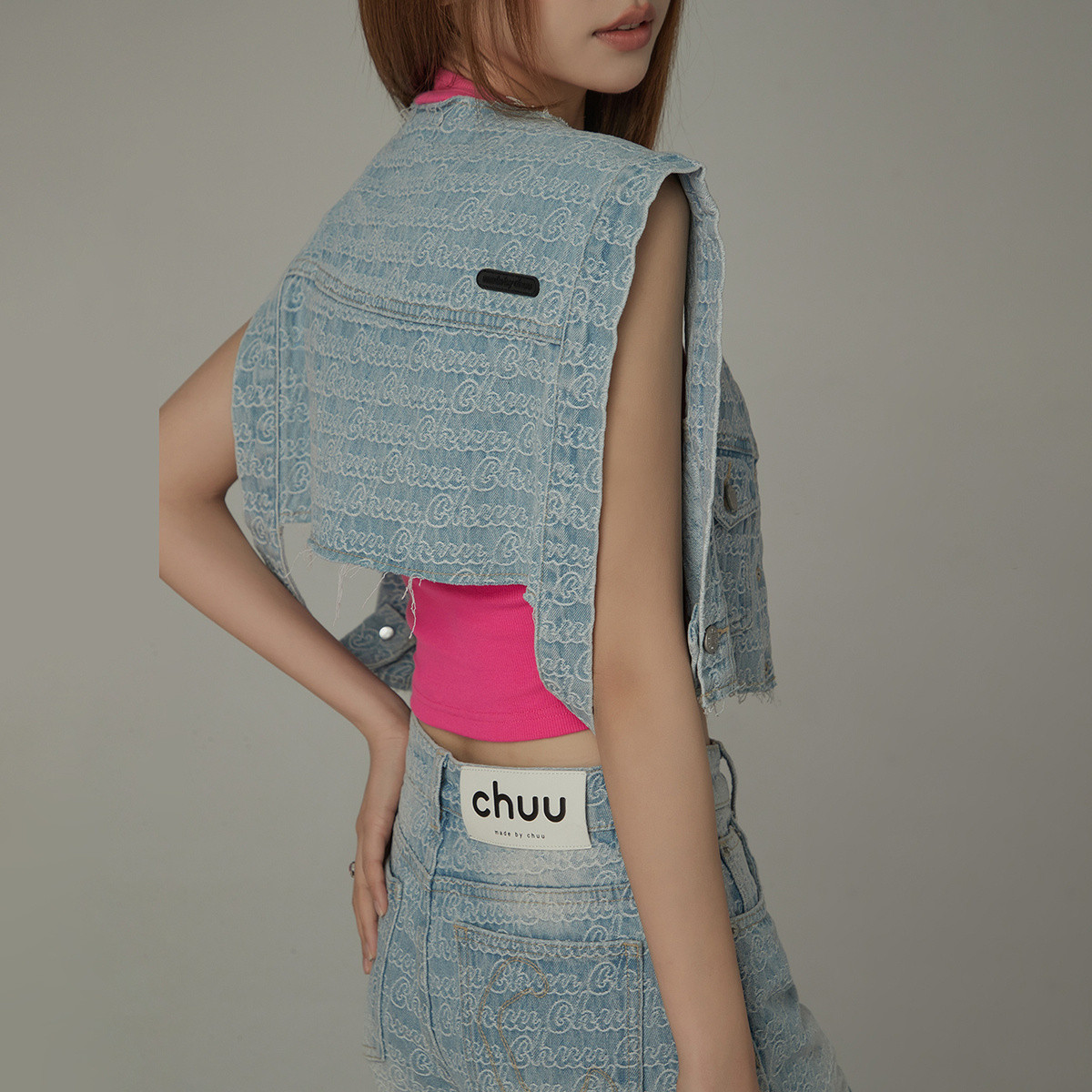 不规则牛仔马夹女士夏字母满印马甲磨破无袖外套 808147