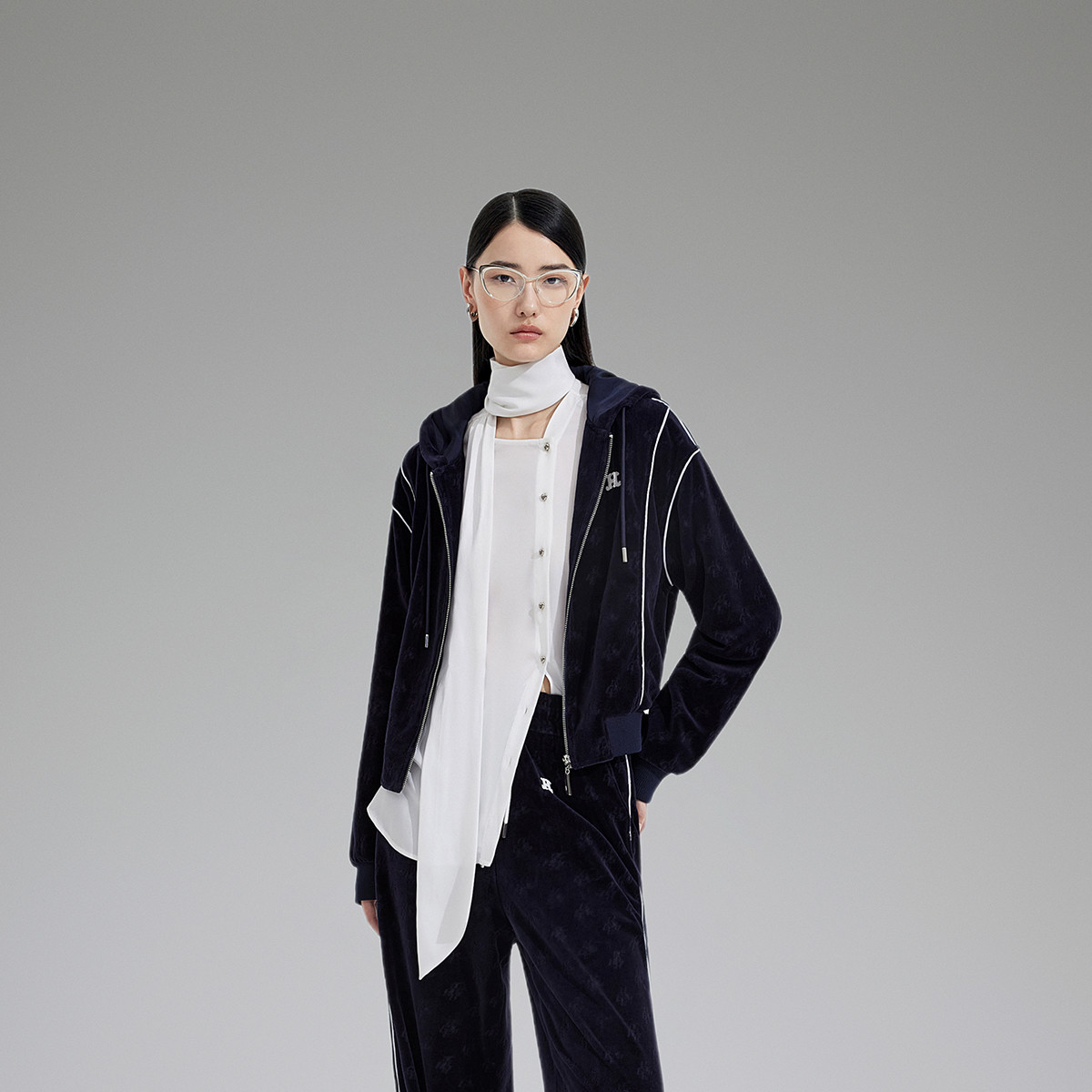 春装 提花连帽宽松天鹅绒运动休闲外套女 392463