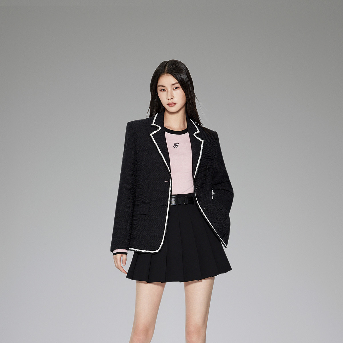 春装 撞色学院风提花带子纱小香风西装外套 591439
