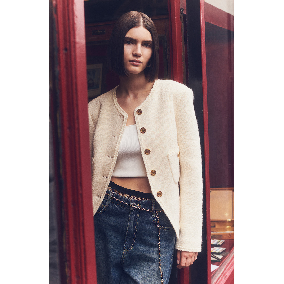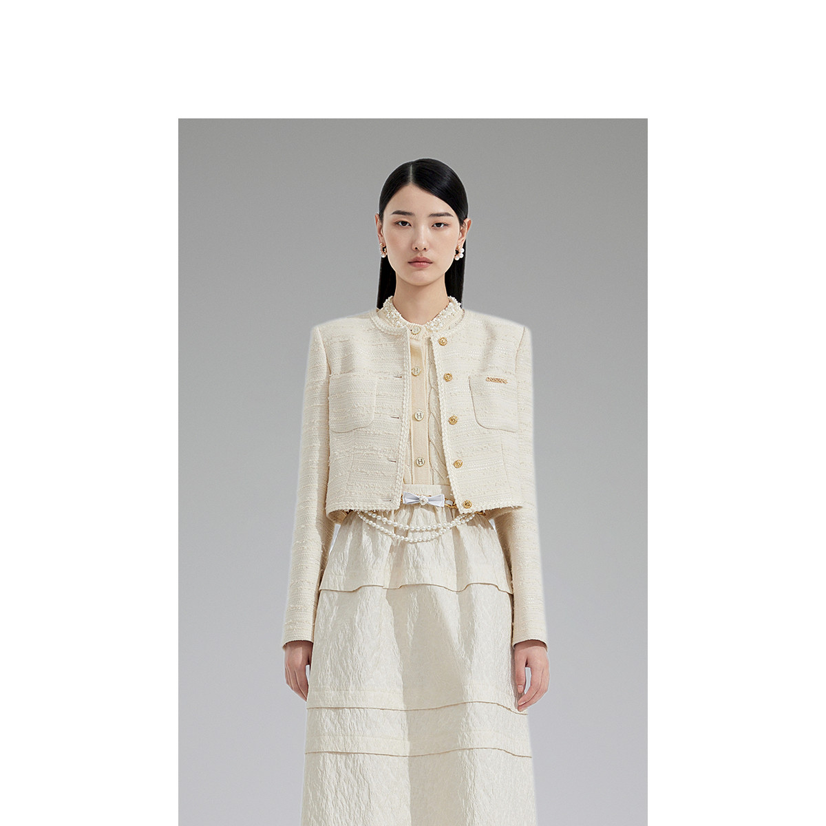 春装 配活动袖活动领肌理感法式花式纱小香风外套女 802063