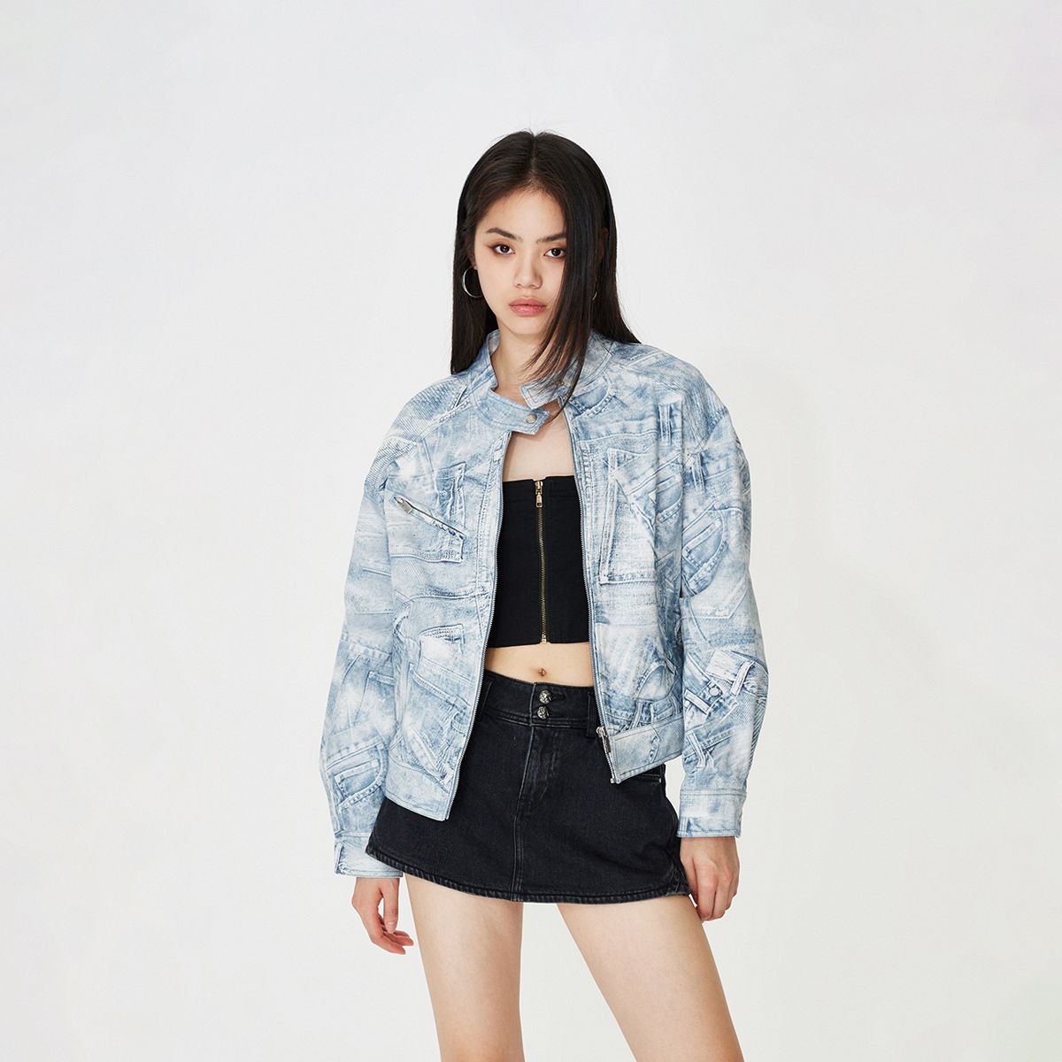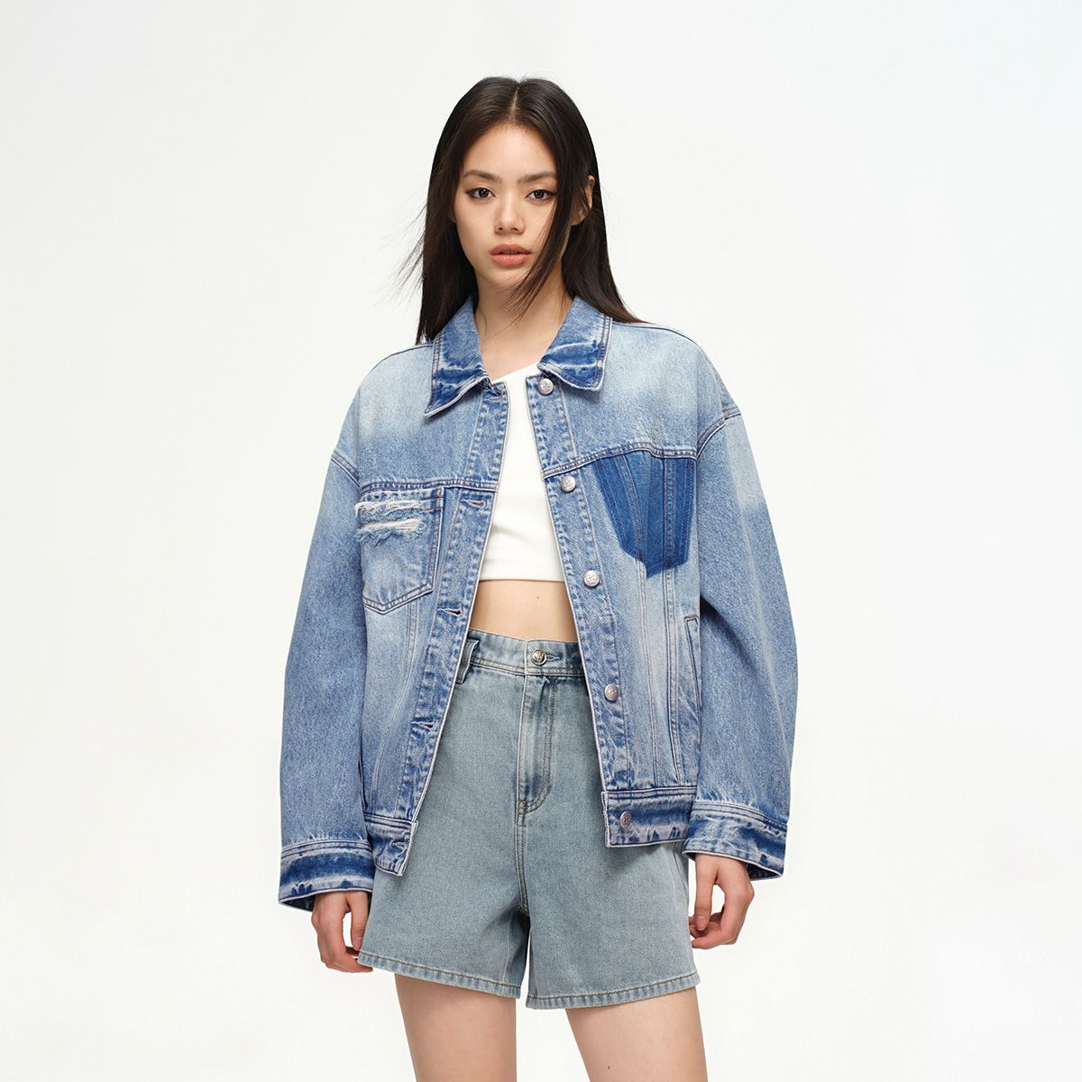 【做旧水洗】夏季OVERSIZE翻领牛仔外套女 435418