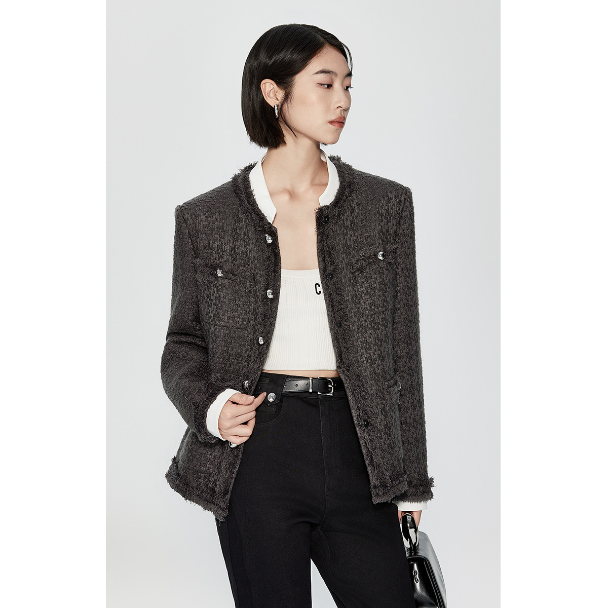 地素粗花呢外套春秋季专柜毛边流苏外套女 022987