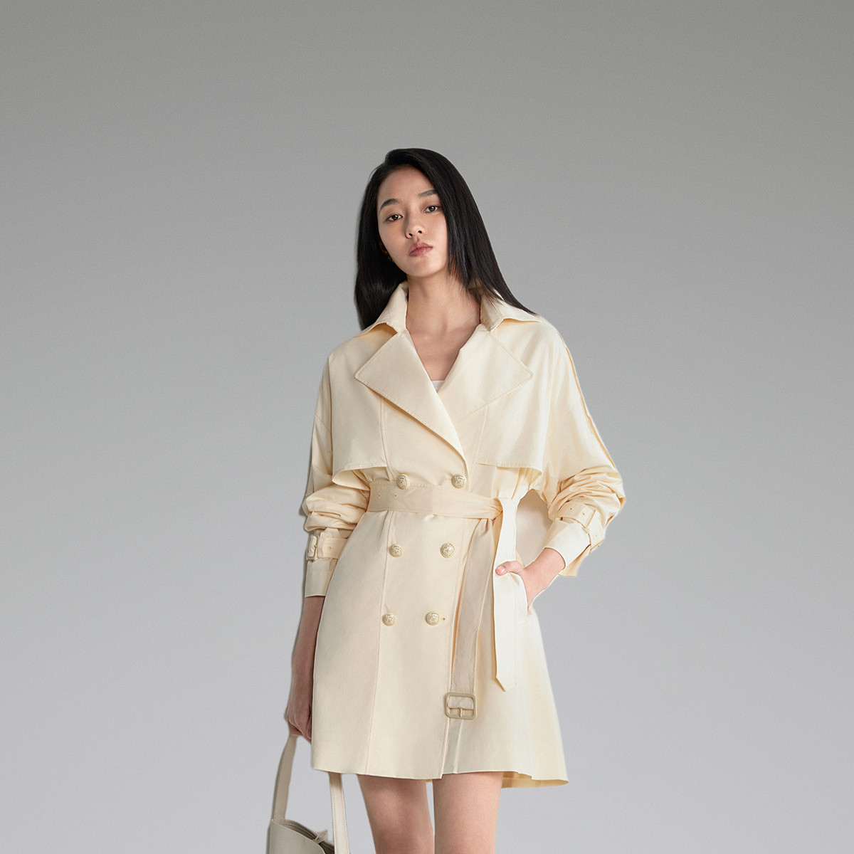 【简约宽松】夏季翻领双排扣长袖中长款外套女 760282
