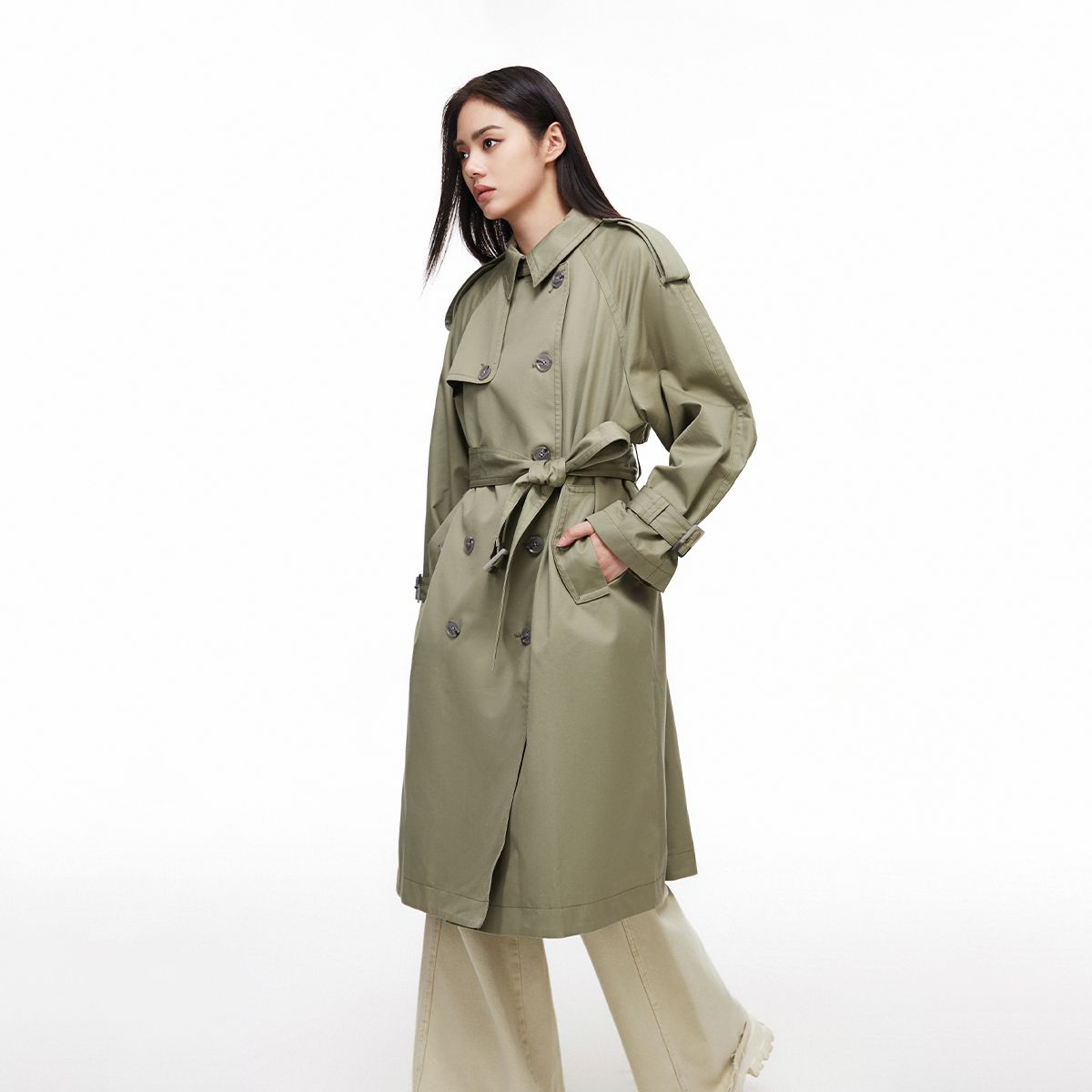 黑标系列春装 配腰带英伦风醋酸中长风衣外套女 802127