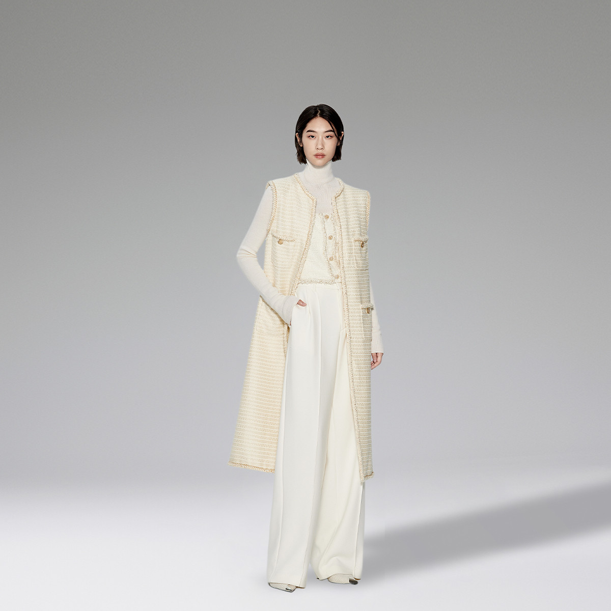 夏装法式中长款进口花式呢小香风马甲外套 866319