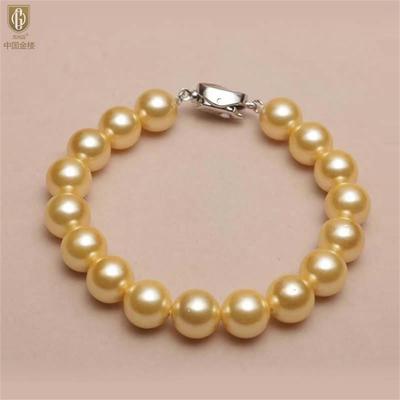 中国金楼 梵尚品 南洋进口正圆无暇全尺寸浓金珍珠手链 6mm