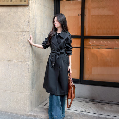 mashluxy 有骨感赫本风收腰风衣 黑色 M码