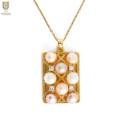 中国金楼 梵尚品 天然彩虹珍珠K金平安无事牌吊坠(赠K金项链)