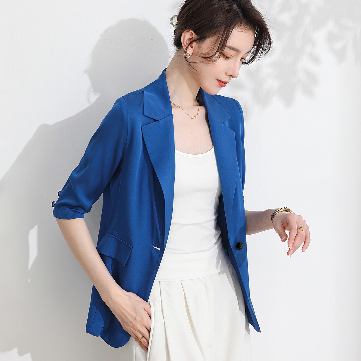 【桑蚕丝礼服】春夏纯色开衫职场正装一粒扣小西装外套开衫 537427