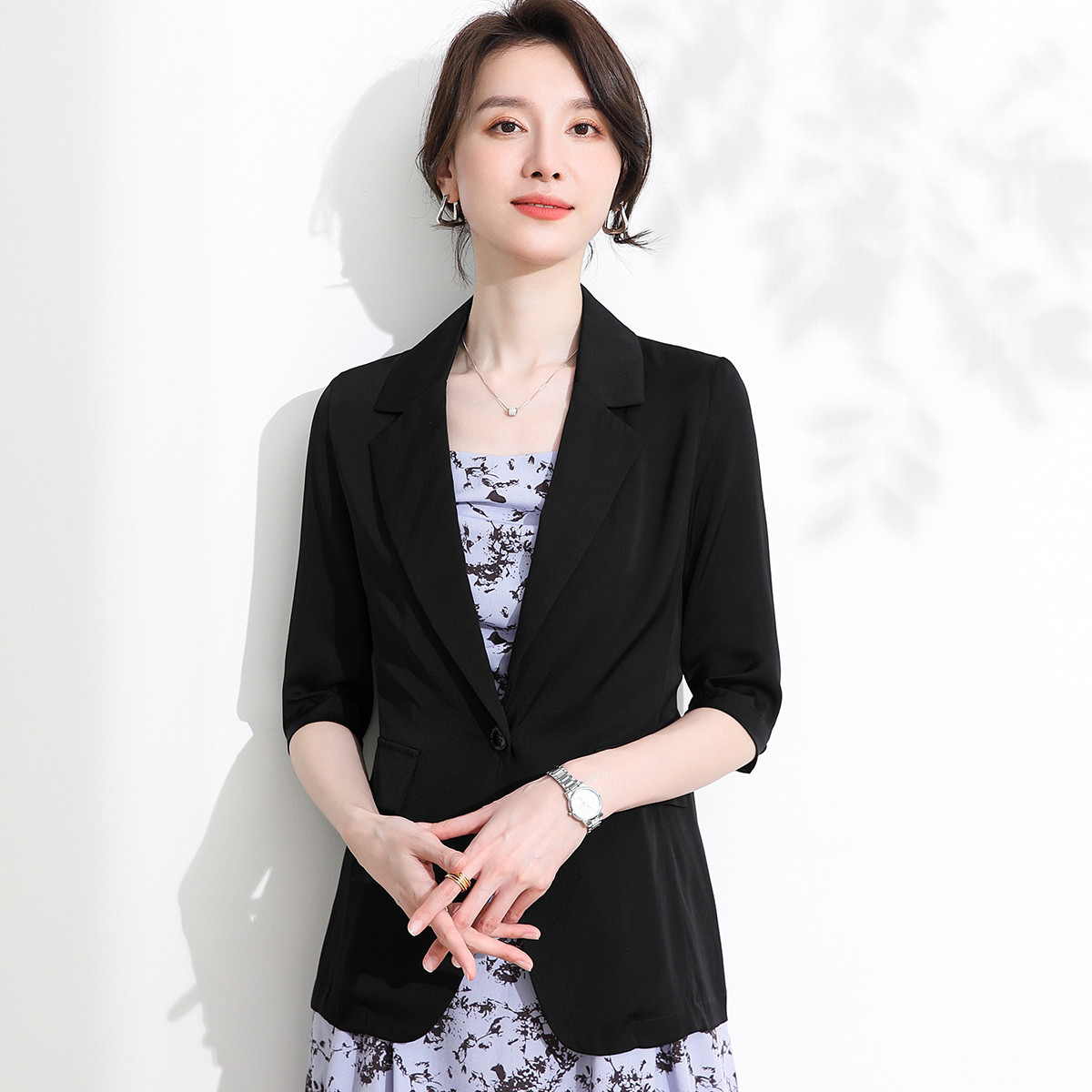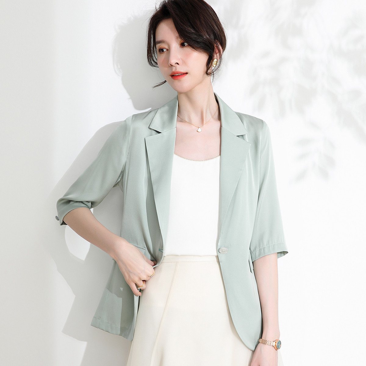 【桑蚕丝礼服】春夏纯色开衫职场正装一粒扣小西装外套开衫 742227