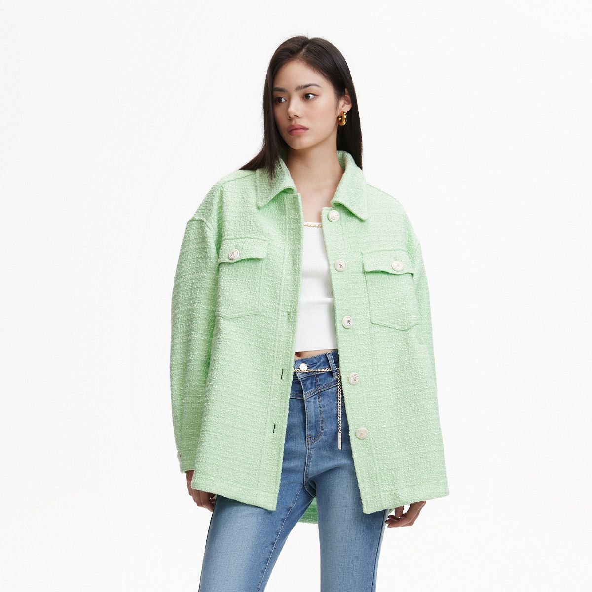 【通勤风】夏季粗花呢单排扣翻领宽松外套女 673114