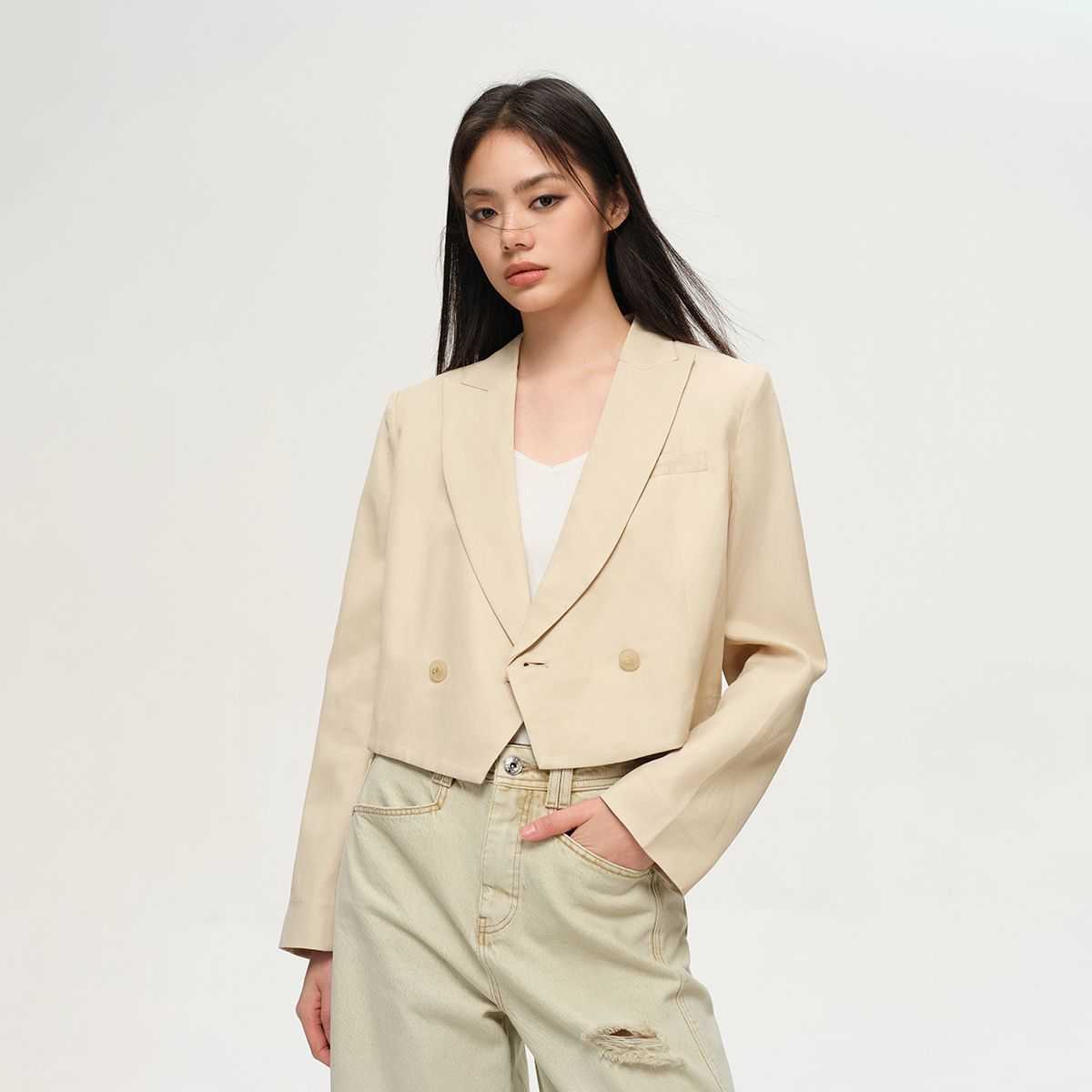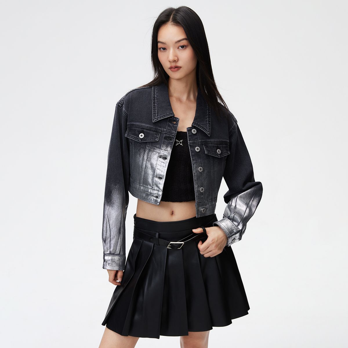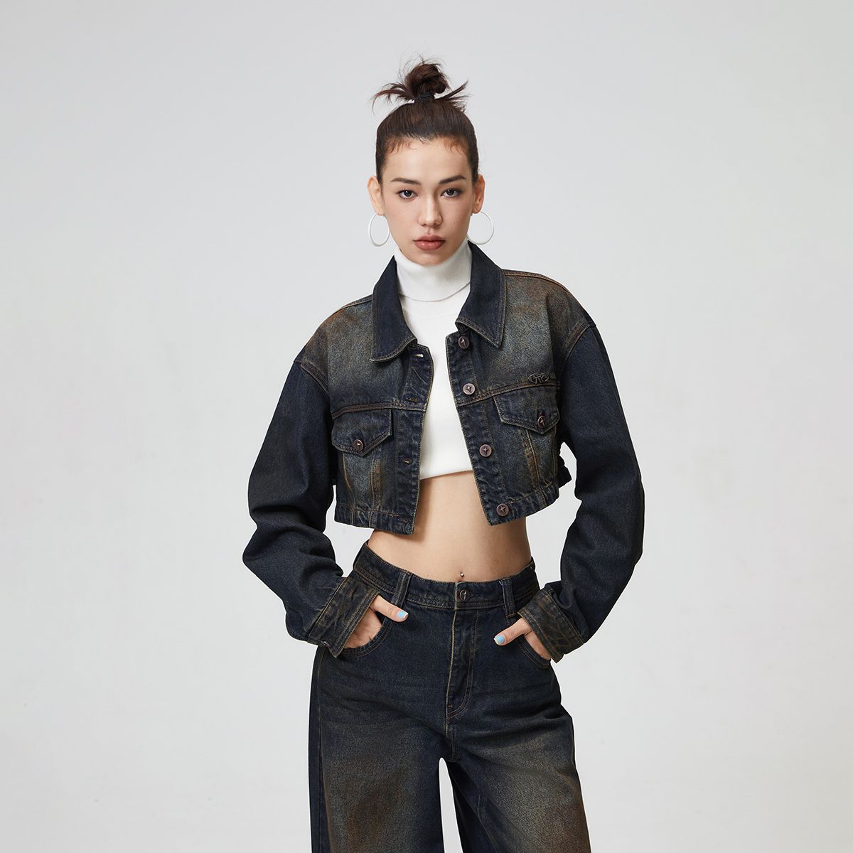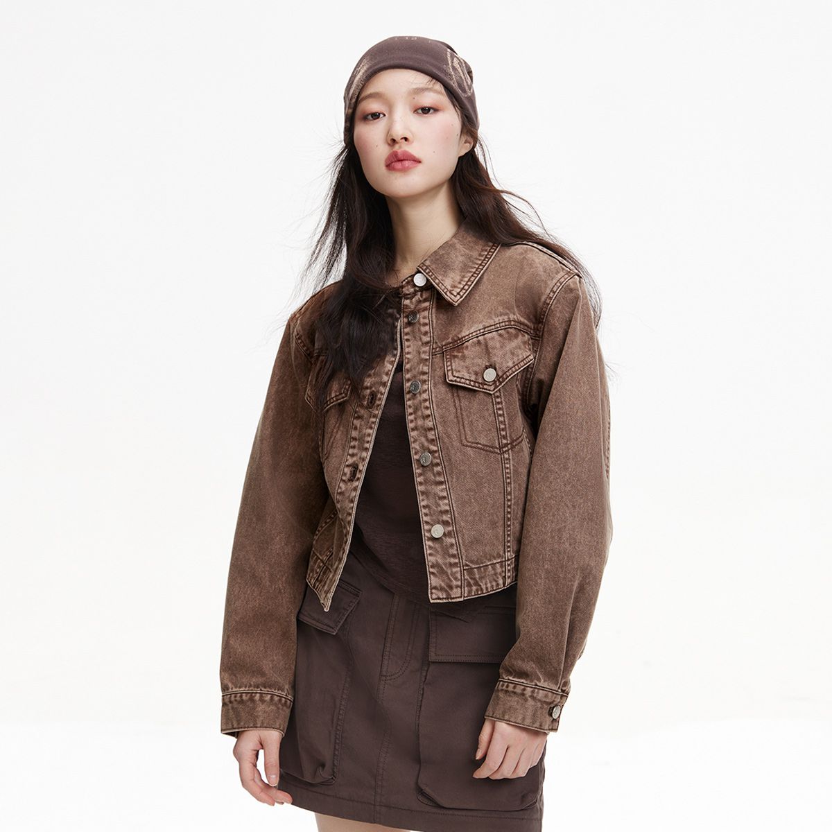 【复古做旧】春季水洗金属纽扣翻领短款外套女 806682