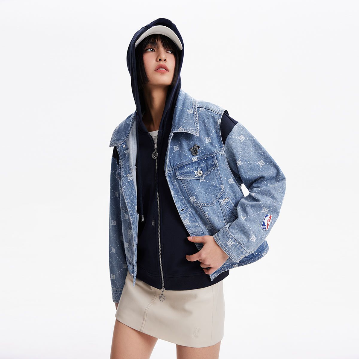 【NBA联名】夏季拼接连帽套装短款牛仔外套女 670490