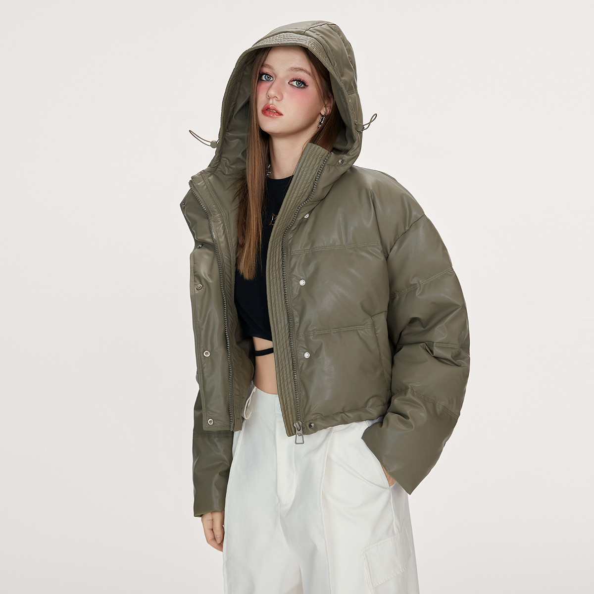 立领白鸭绒短款羽绒服女美式加厚面包服外套 730260
