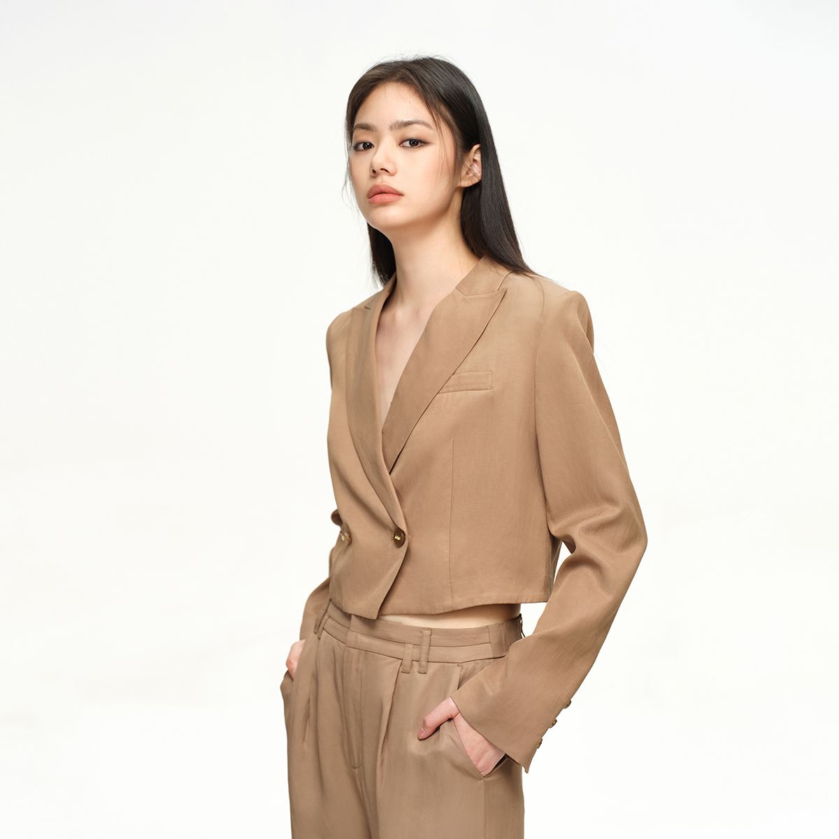 【福利特卖款】夏季通勤纯色直筒长袖短款西服女 500826