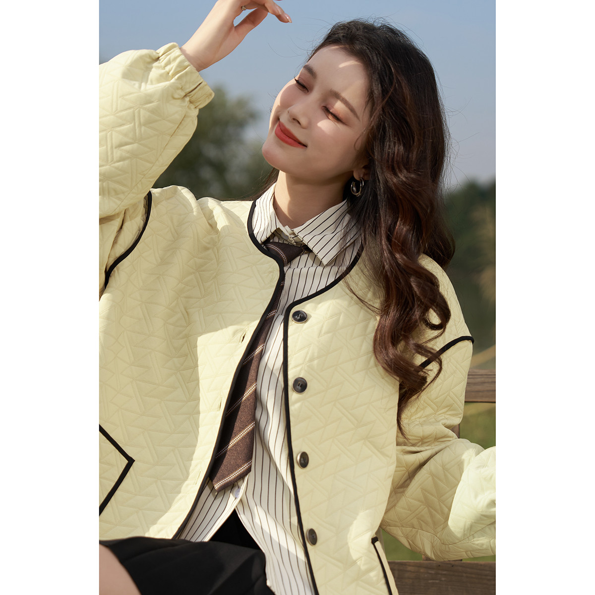 【撞色包边香风外套】春秋松弛感显瘦减龄学院甜美短款薄款外套女 570177