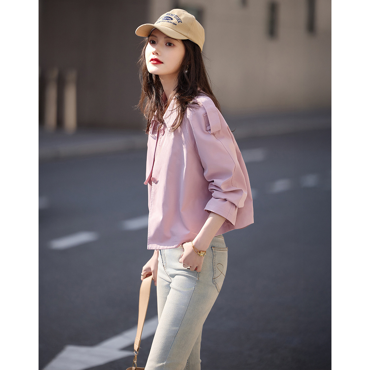 【多巴胺特辑】春秋简约风翻领微弹松弛感显瘦风衣外套女短款 263873