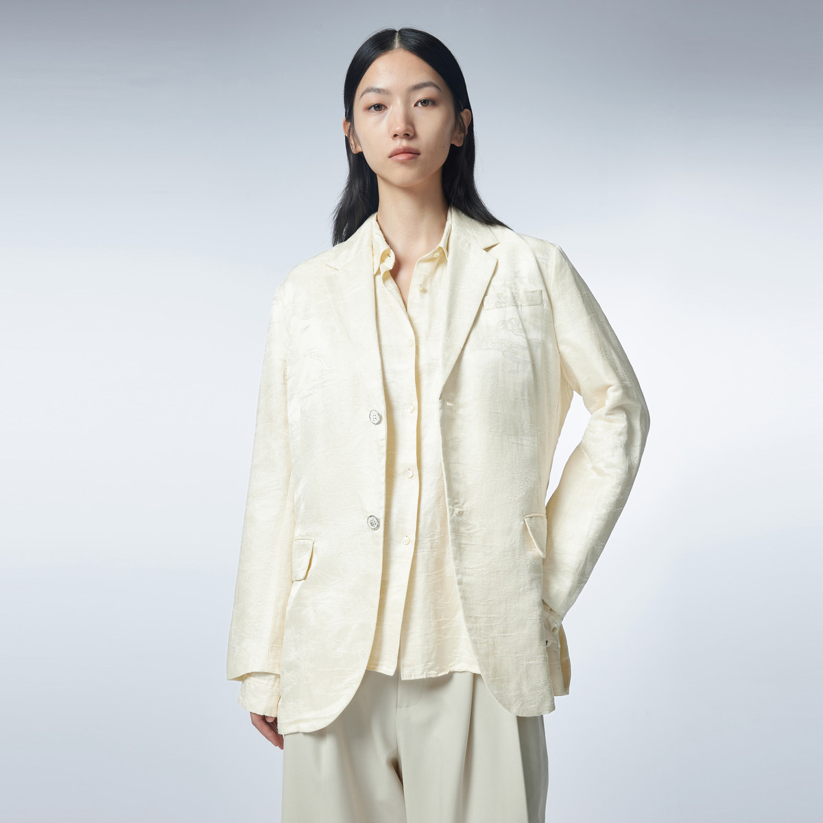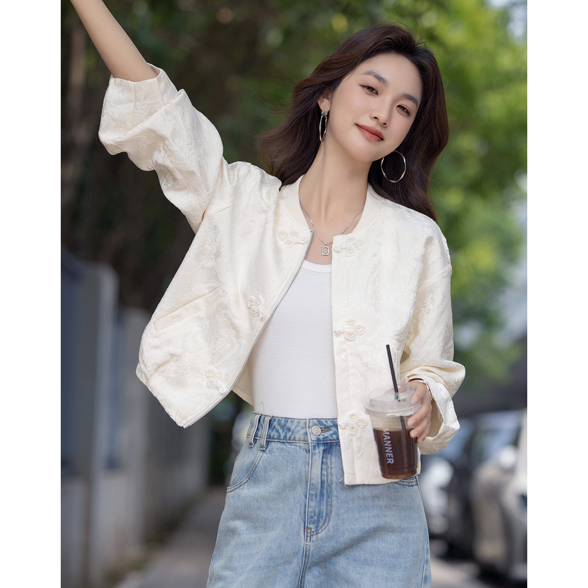 【下江南系列】春秋国风新中式立领提花上衣珍珠装饰扣女式短外套 466241