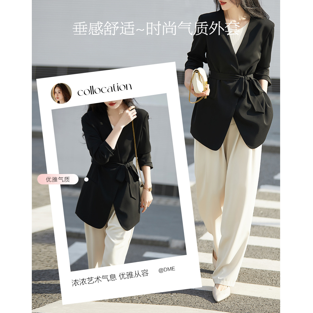 【垂感不易起皱】春秋通勤款V领宽松长袖系带气质外套女上衣 594497