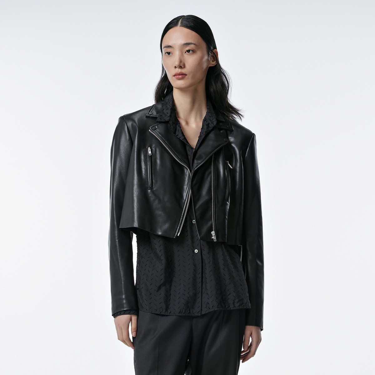 秋皮衣西装领宽松长袖外套女 996939