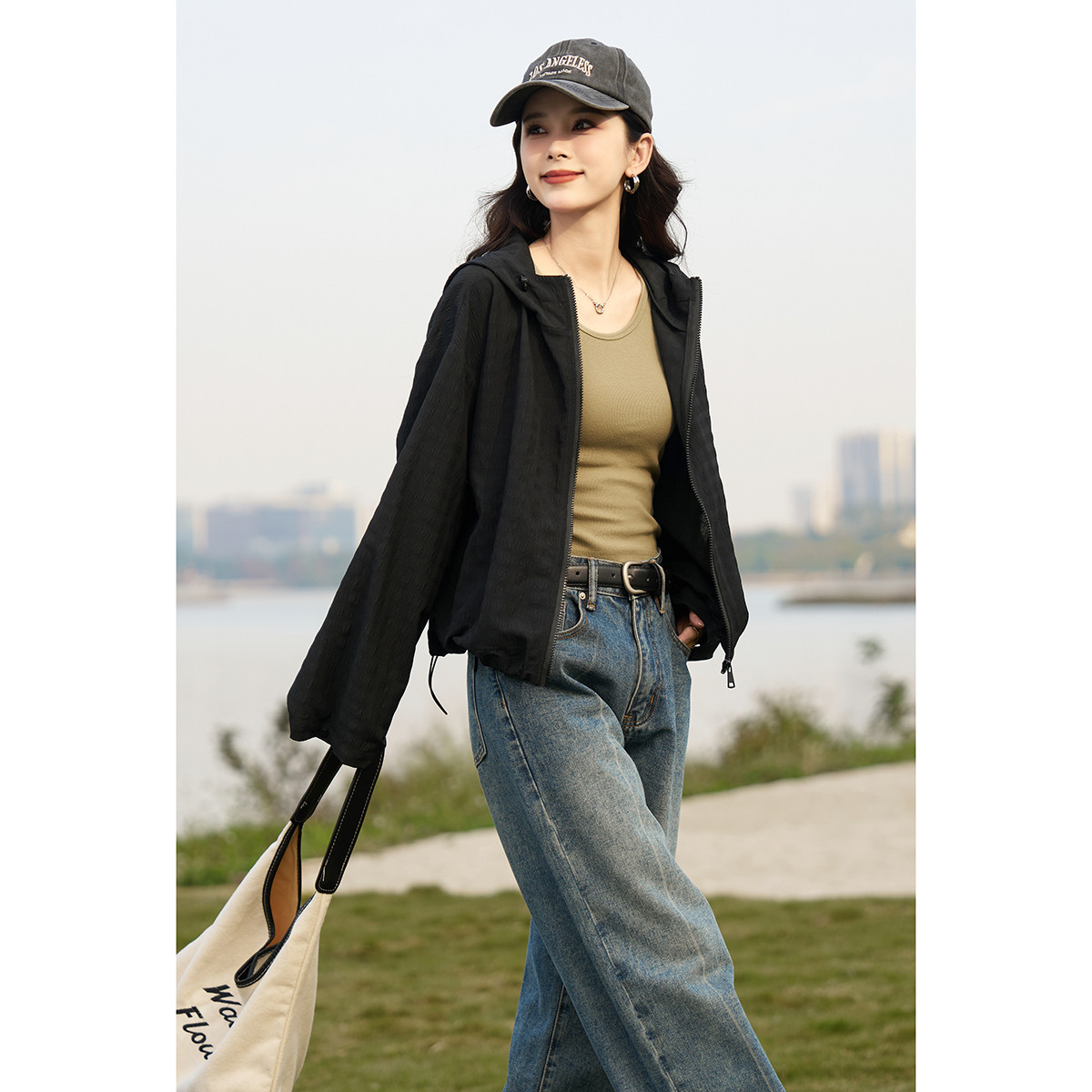 【清透凉感外套】春秋连帽透气冰感轻薄运动风防晒外套女上衣 518785