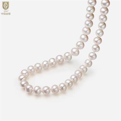 中国金楼 梵尚品 奥地利进口正圆极光无暇全尺寸奶油珍珠项链 8mm