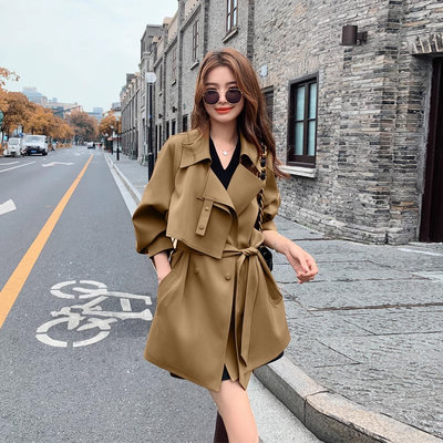 mashluxy 假两件设计感收腰风衣 浅卡其 XL码