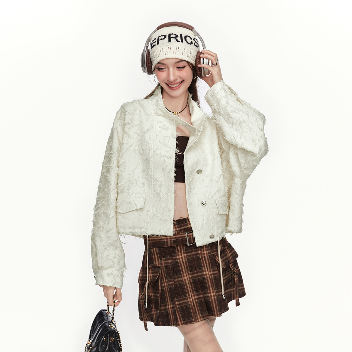 2024春流苏抽绳重工通勤外套女小众设计感休闲立领上衣 947028