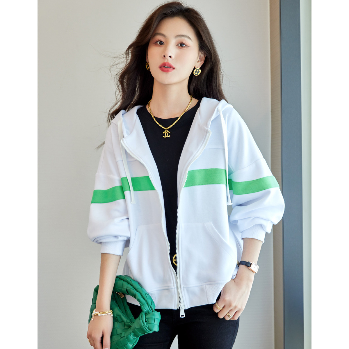 连帽卫衣外套女春季开衫双色宽松休闲舒适学生风运动上衣 224664