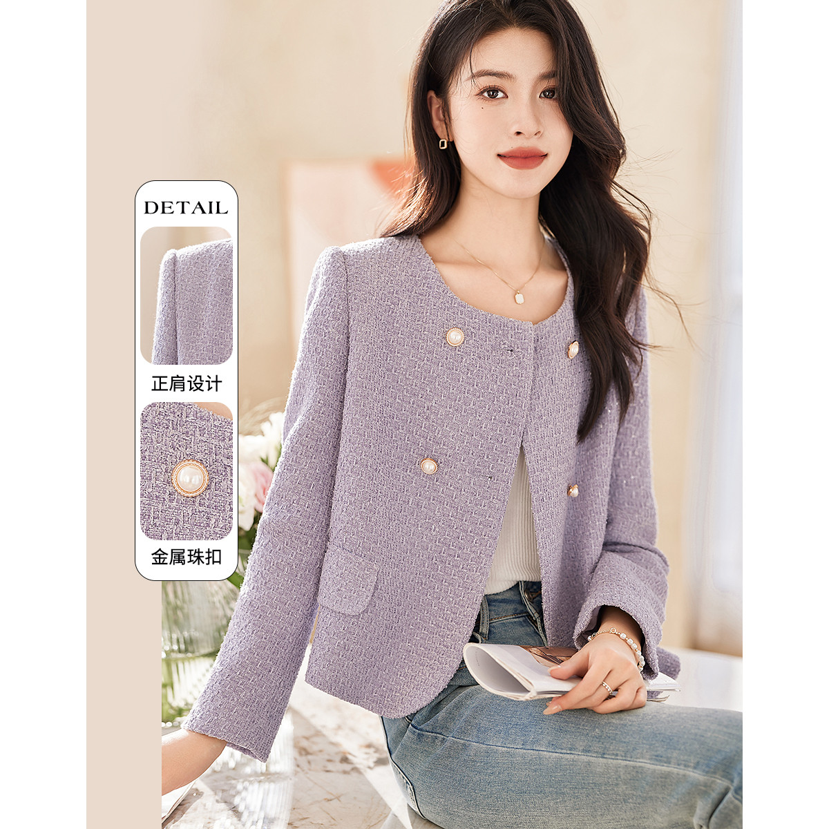 玖姿旗下安娜蔻系列复古老钱风羊毛混纺西装外套女春季 217100