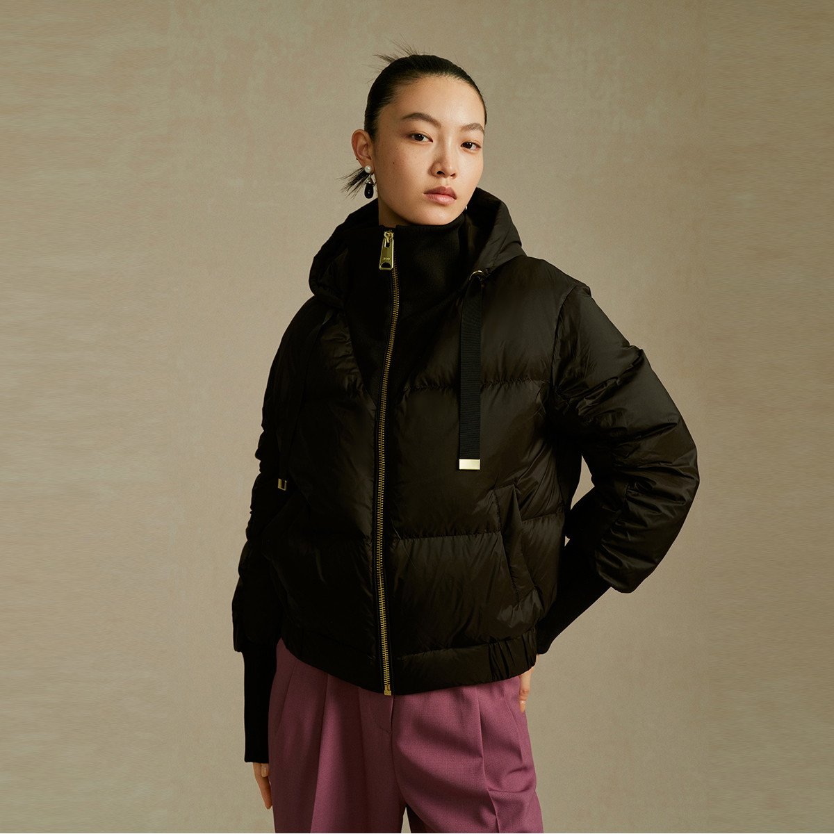 【鹅绒】厚款保暖连帽女士短款宽松休闲泡芙羽绒服 875871