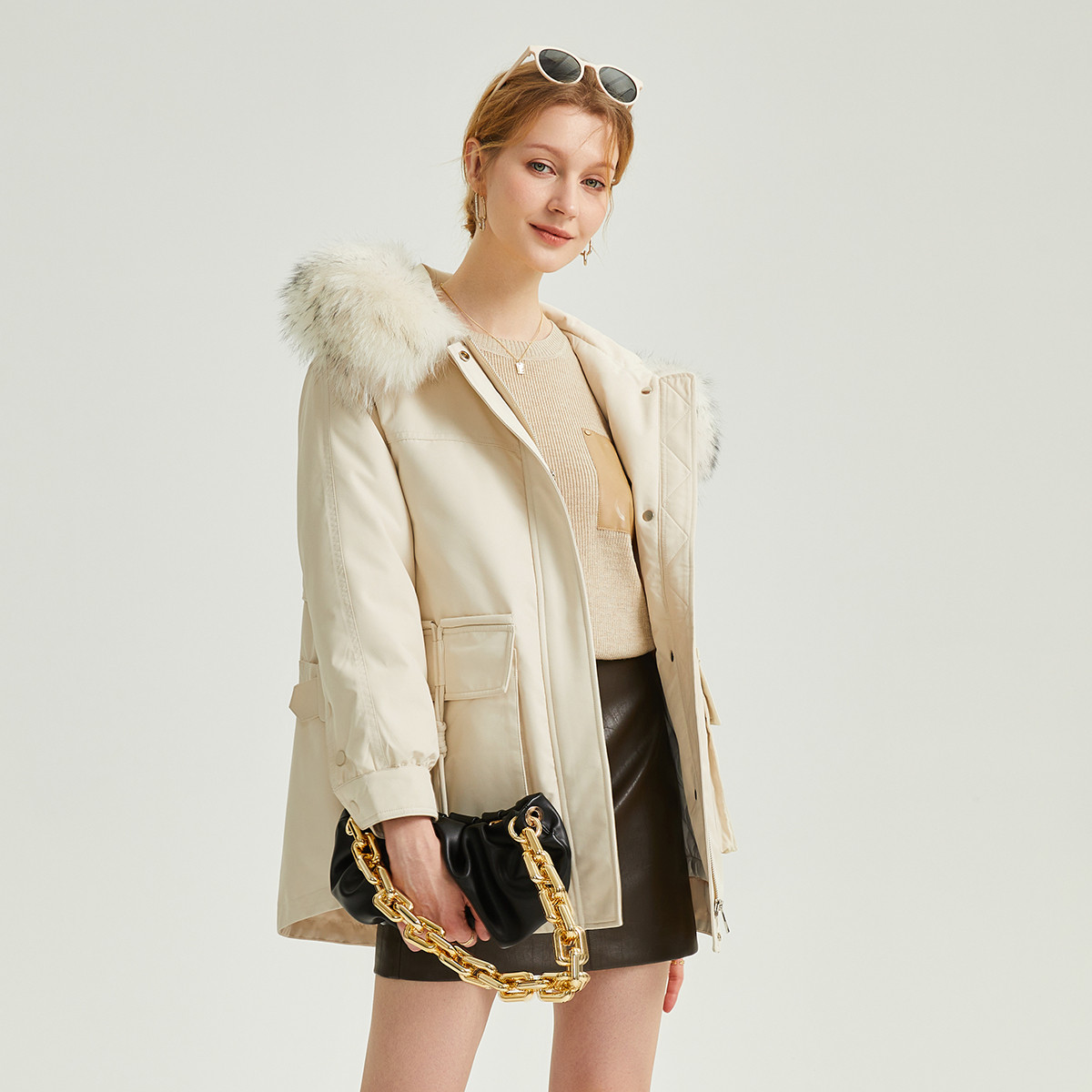 【90鸭绒】宽松中长款翻领收腰时尚保暖羽绒服女 578646