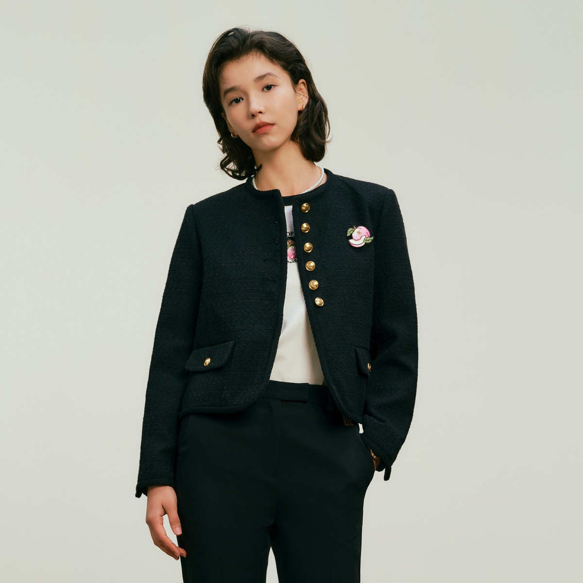 小熊春秋款短款法式小香风粗花呢气质外套女 319425
