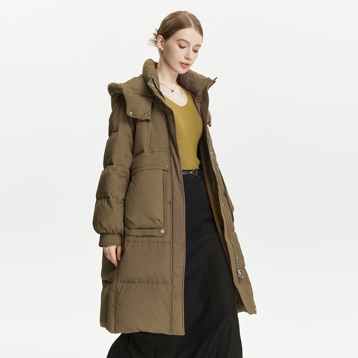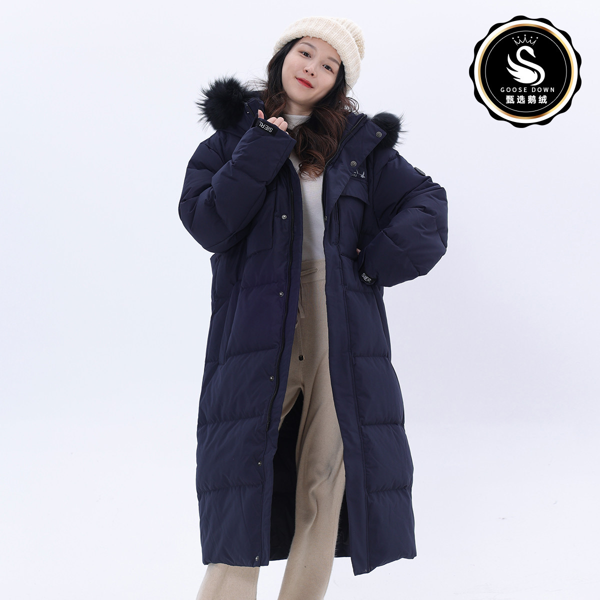 【鹅绒爆款】冬季女士长款羽绒服简约连帽防寒保暖极寒服 593759